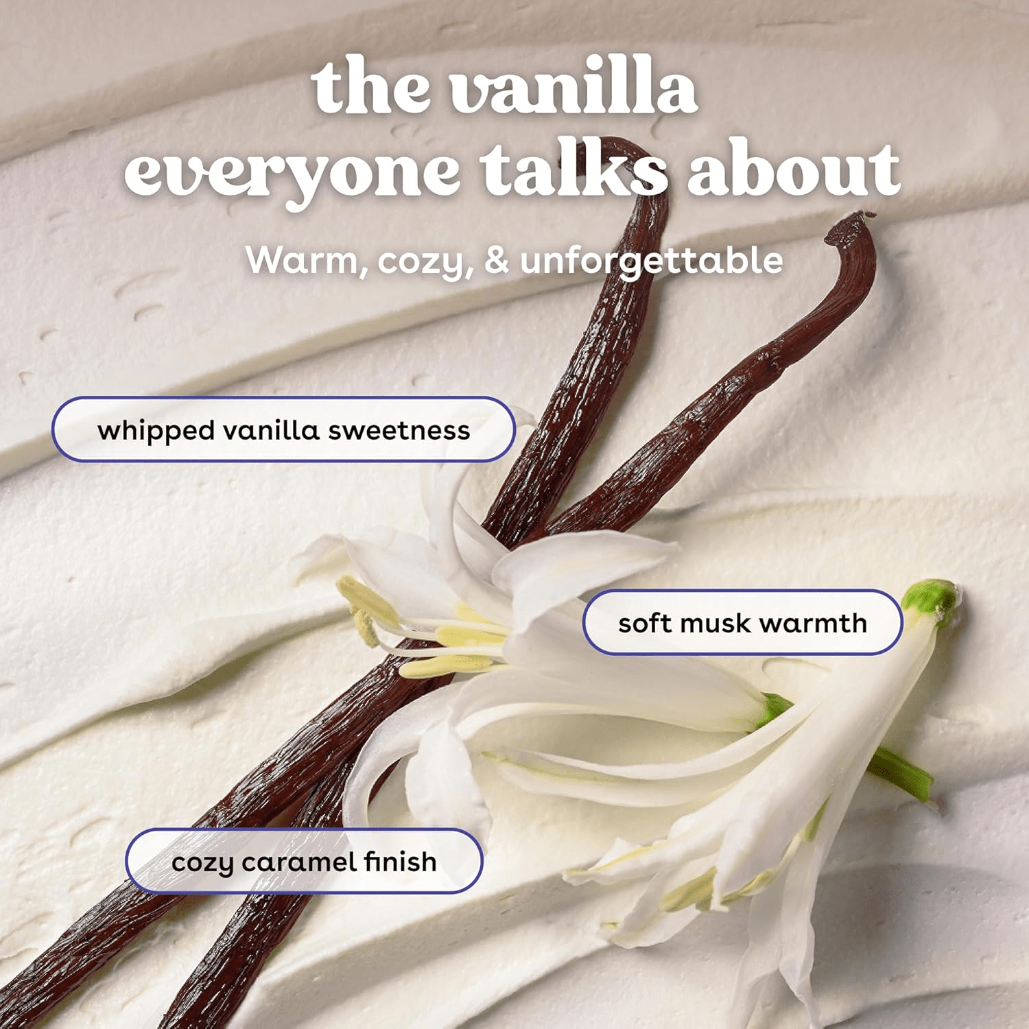 • VANILLA CASHMERE: Indulge in our delectable Vanilla Cashmere scented body lotion with notes of whipped vanilla, soft musk, and cozy caramel, offering a comforting sensory experience.