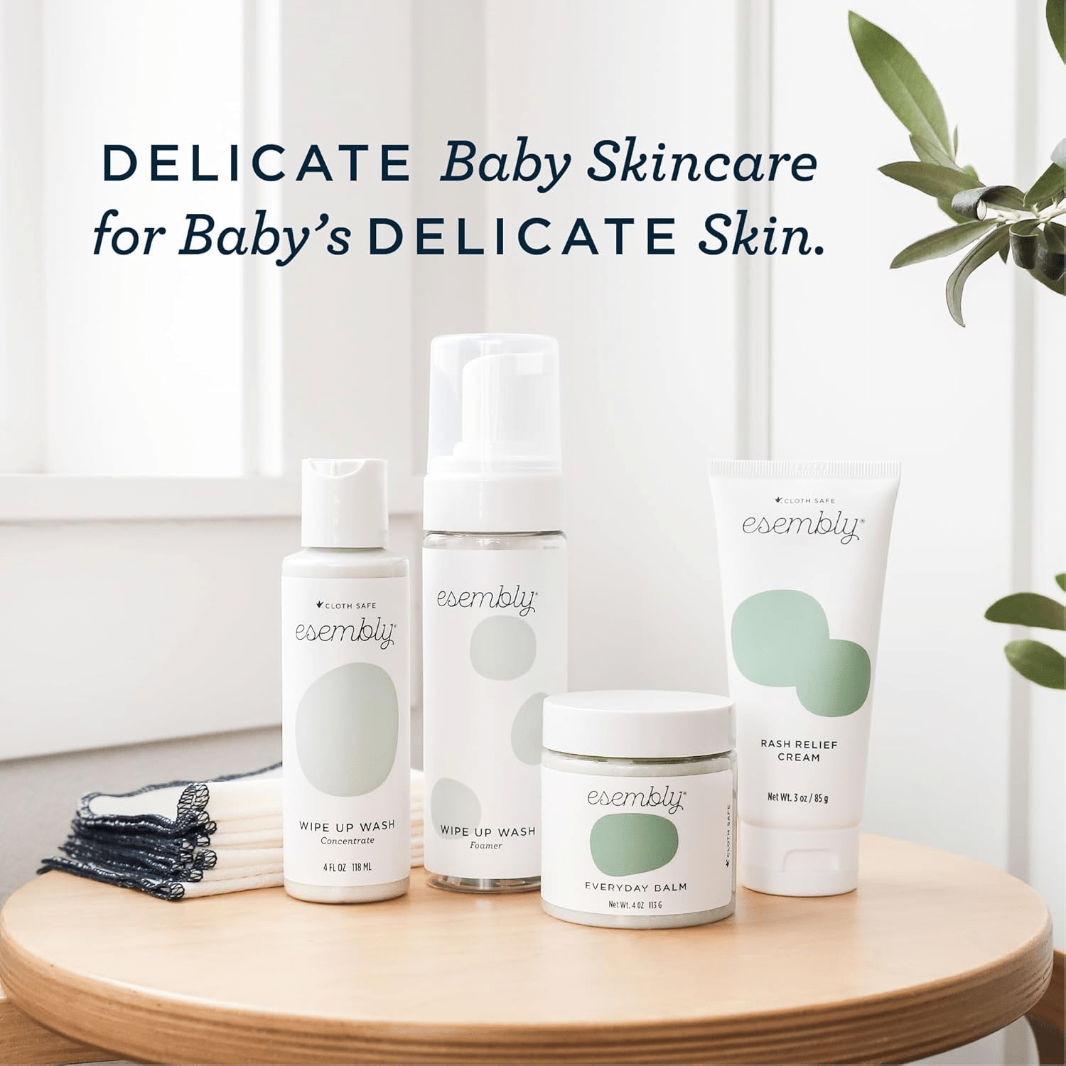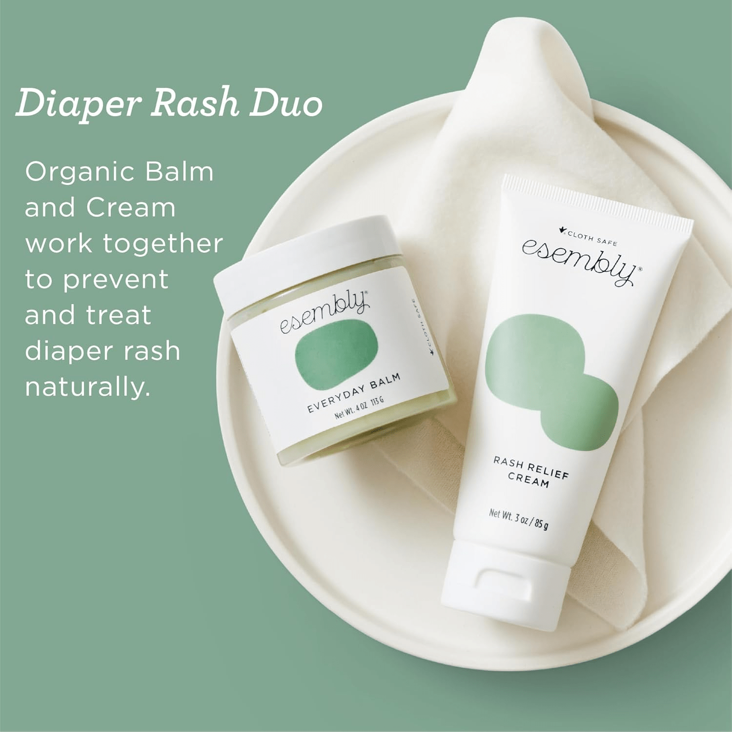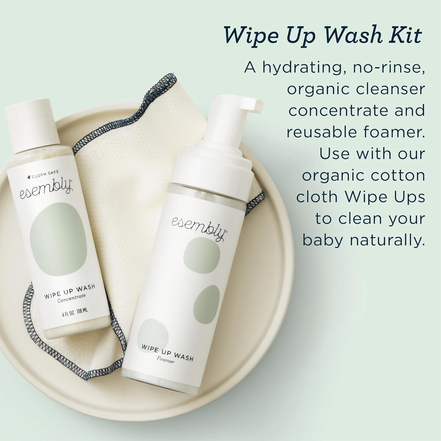 - Welcome your little one with the Esembly Skincare Kit, a thoughtfully designed gift set of organic skincare solutions perfect for new parents. This all-natural, fragrance-free collection includes everything needed to keep baby clean and comfortable during diaper changes. With a cloth-friendly everyday balm, organic diaper rash cream, a wipe-up wash cleanser with a convenient foamer bottle, and a dozen reusable organic cotton wipes, this set ensures that your baby’s delicate skin receives the gentle care it deserves.