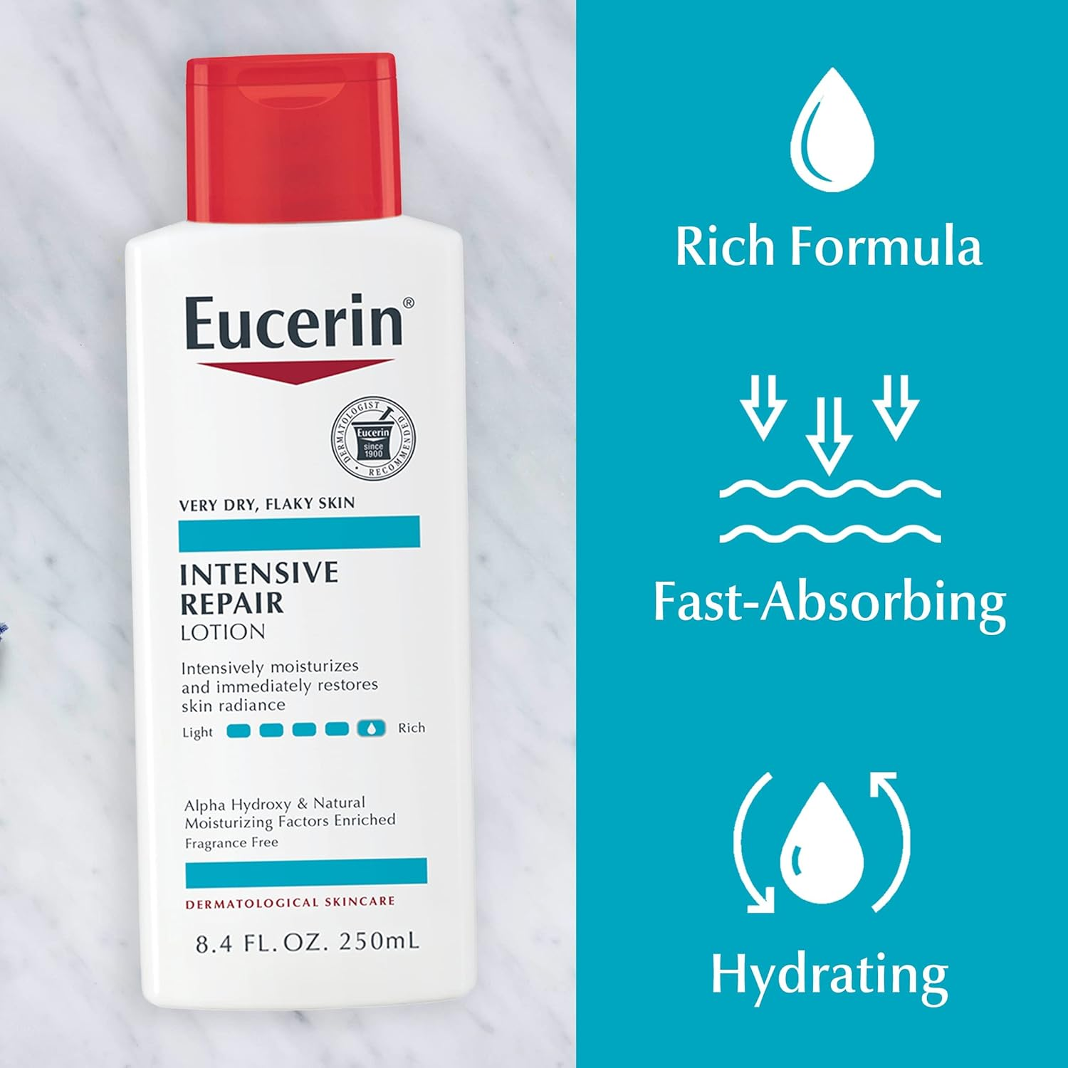 - 24 Hour Hydration: Eucerin Intensive Repair body lotion for sensitive dry skin immediately restores skin’s radiance and delivers 24 hour hydration