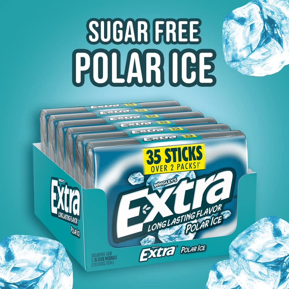 EXTRA Polar Ice Sugar Free Chewing Gum, Party Favors, Gum Packs Bulk, Breath Fresheners, 35 Ct (6 Pack)