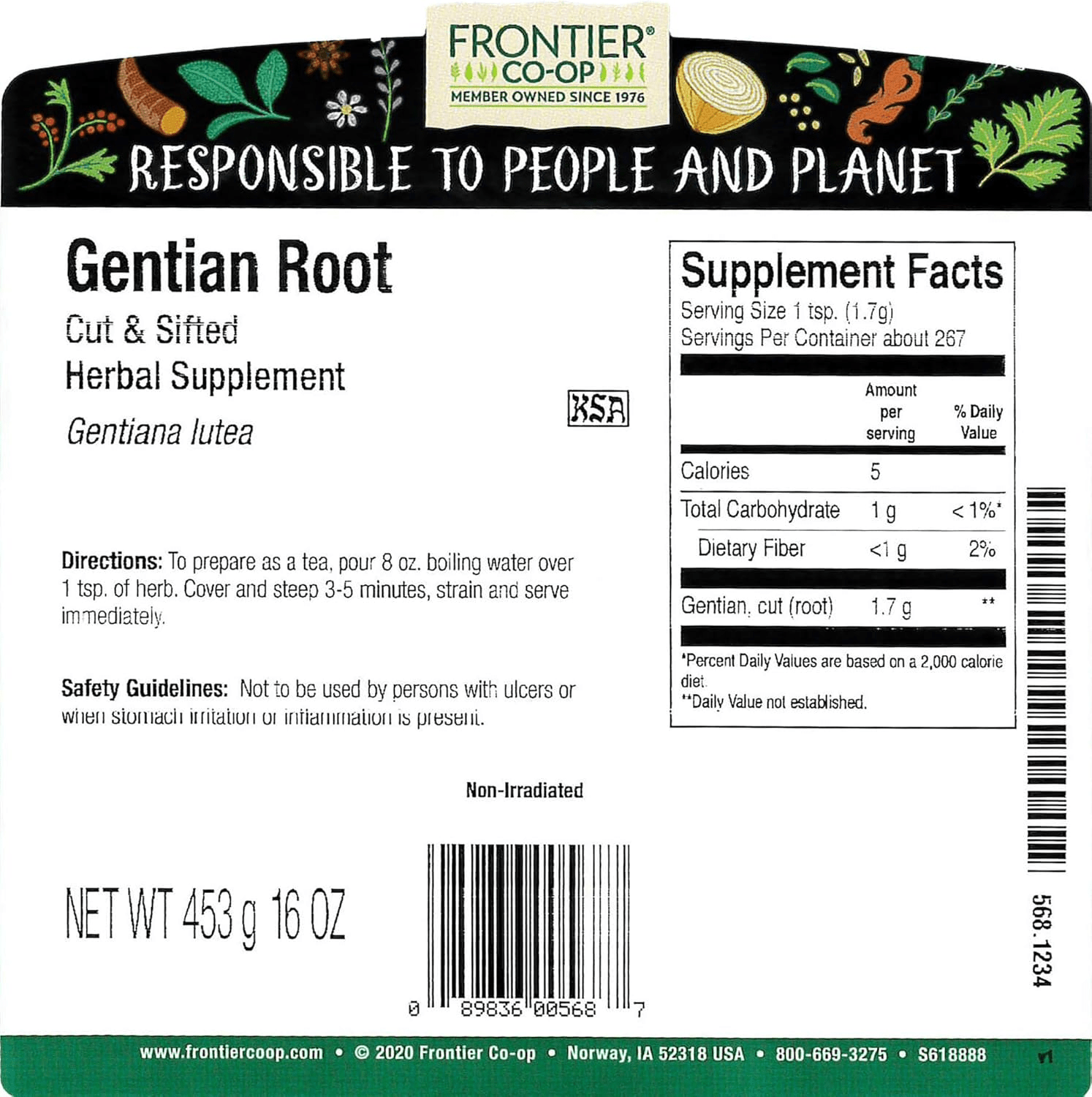 Frontier Co-Op Gentian Root, Cut & Sifted, 1Lb Bulk Bag – Natural Dried Herb – Bitter Taste – Ideal for Gentian Root Tea & Herbal Blends, Kosher