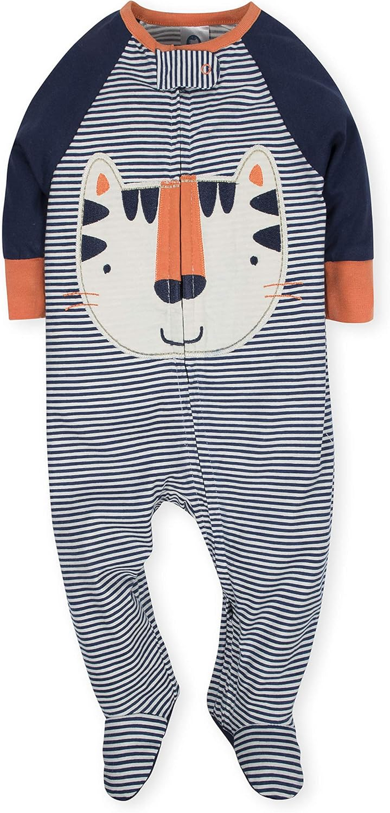 – Safety tab atop the zipper minimizes irritation on baby’s chin.
