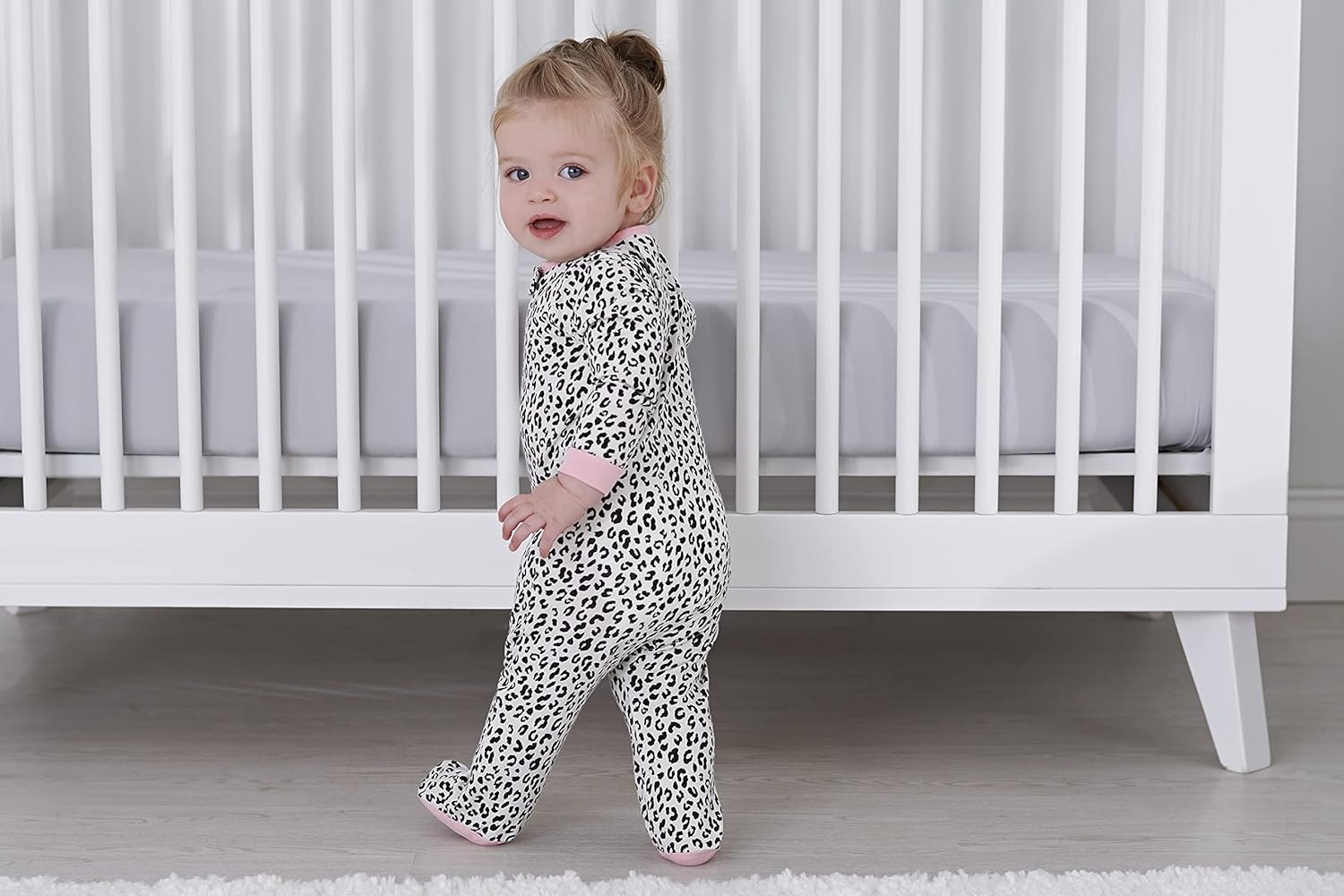 Designed to keep tiny toes warm, the footed style of these outfits adds an extra layer of comfort and security for your little adventurer. Each pack includes adorable prints, including a charming leopard pink design, allowing for a variety of options to match any mood or activity. These Sleep ‘N Play outfits are more than just clothing; they provide peace of mind for parents, knowing their baby is dressed in high-quality, breathable fabric that prioritizes comfort without compromising on style. Elevate your baby’s wardrobe with this essential set that offers both practicality and aesthetic appeal.