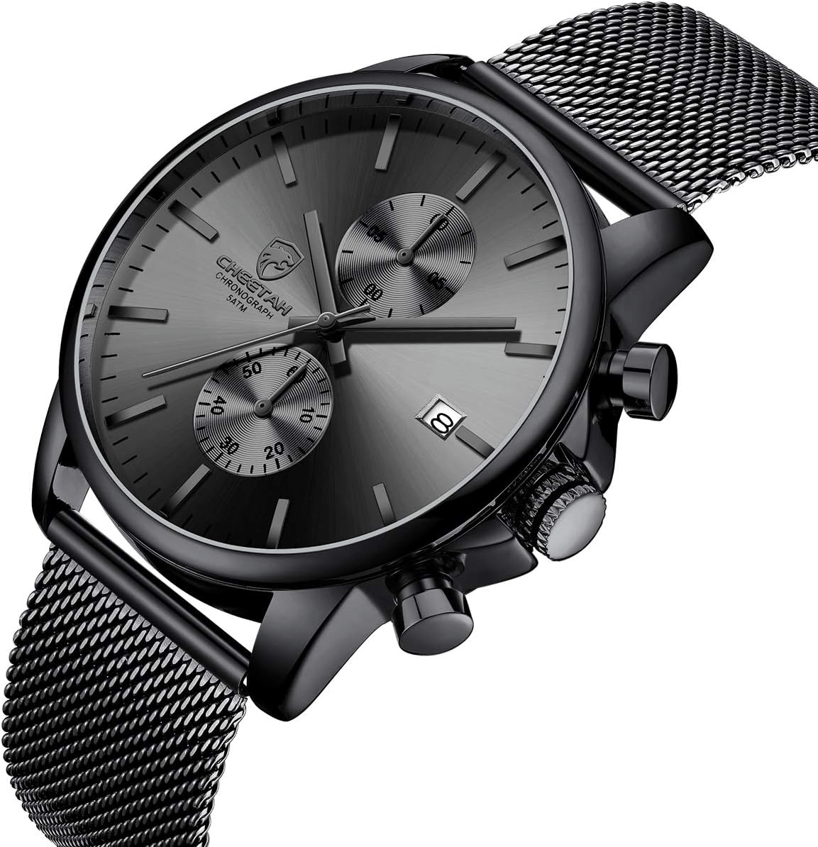 The GOLDEN HOUR watch is further enhanced by its multifunctional chronograph capabilities, making it an ideal companion for sports and activities that require precise timing. Featuring a robust mesh stainless steel band that combines comfort with durability, this timepiece remains securely in place whether you are at the office, on a hike, or enjoying a night out. The elegantly crafted black dial is complemented by a visible auto date feature, seamlessly merging form with function and making it a thoughtful gift option for your loved ones across various occasions including birthdays, anniversaries, or holidays.