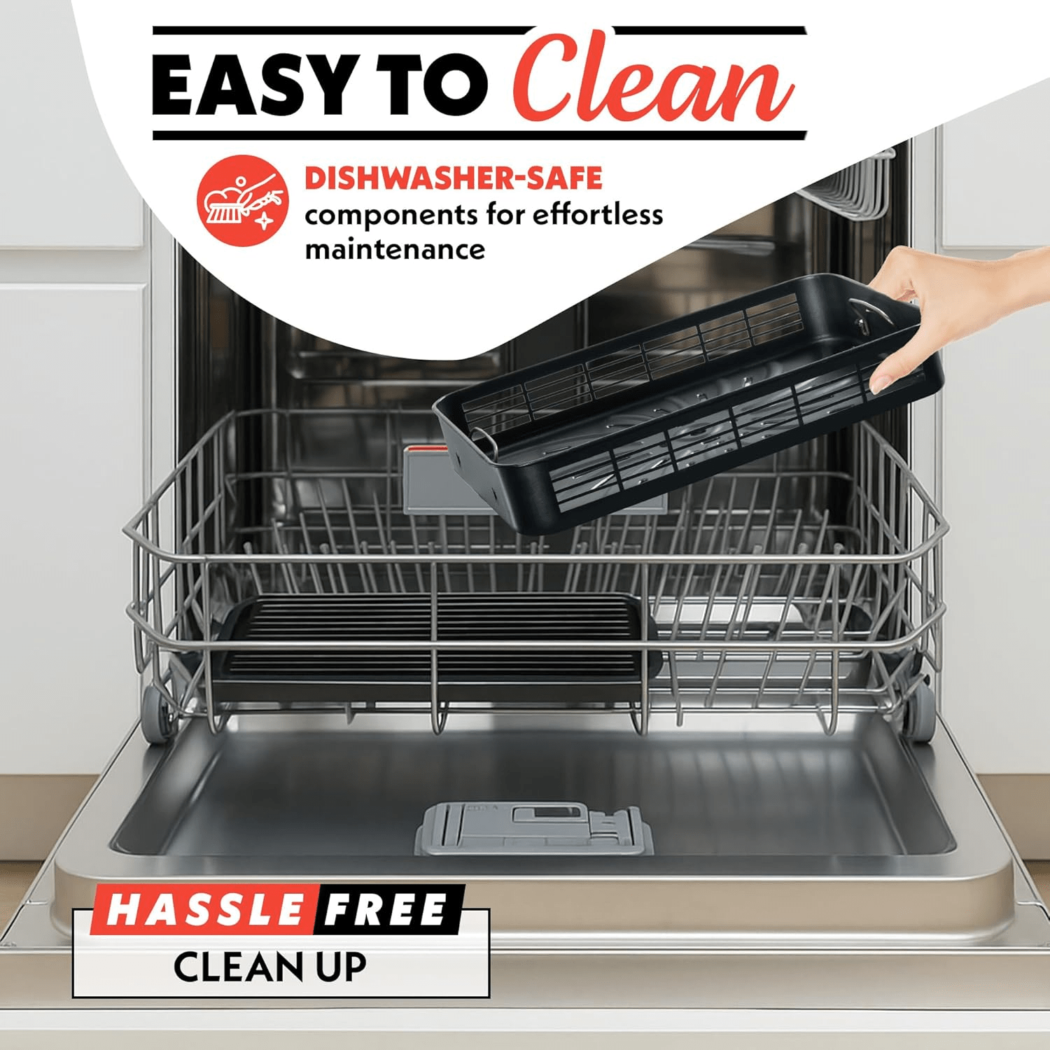 - EASY CLEANUP: Includes removable nonstick, dishwasher safe grill grate, air fry basket, and drip tray