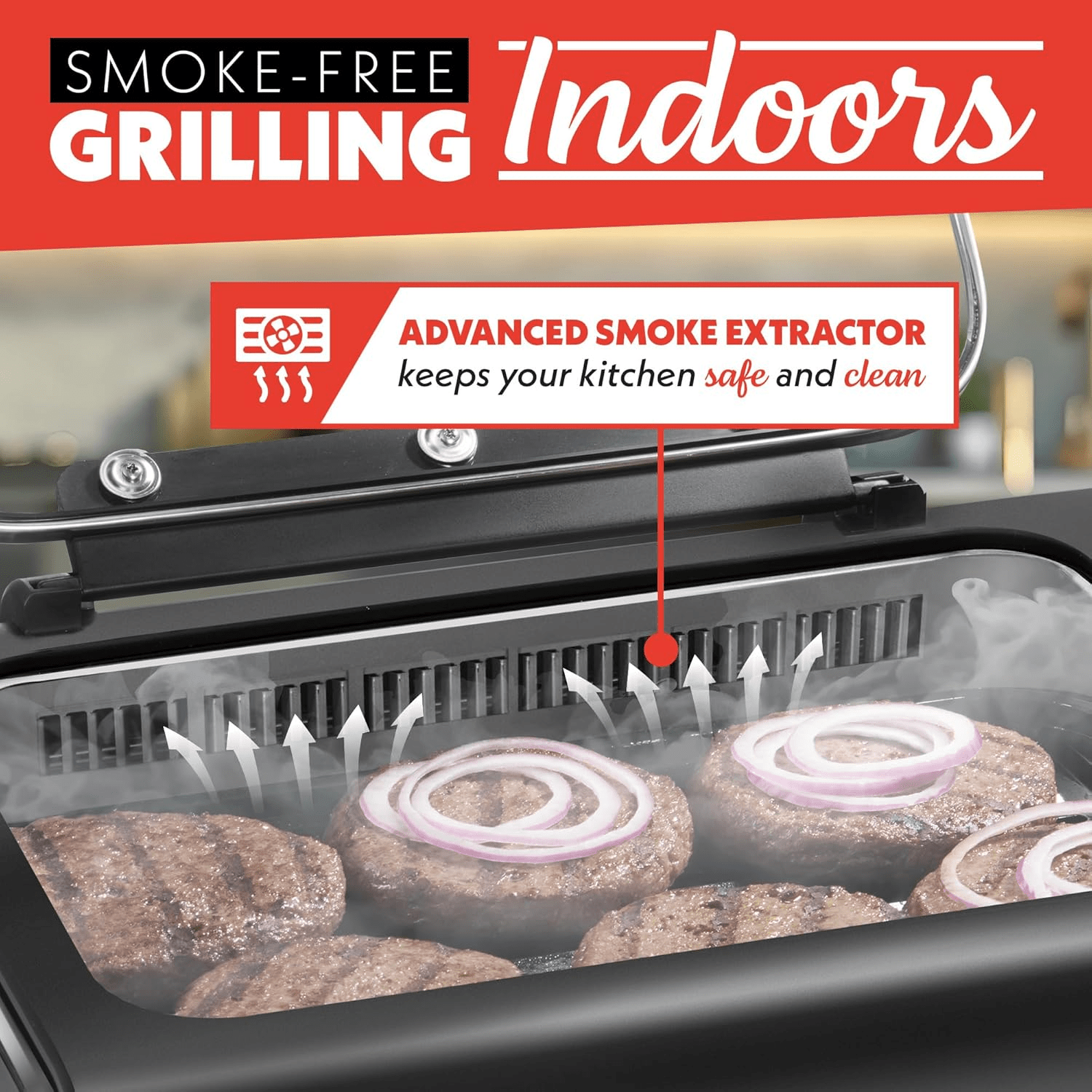 - SMOKE EXTRACTING TECHNOLOGY: indoor grills electric smokeless built-in Smoke Extractor provides real indoor grilling and searing with virtually no smoke