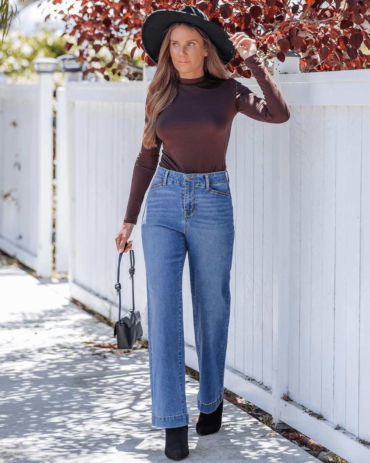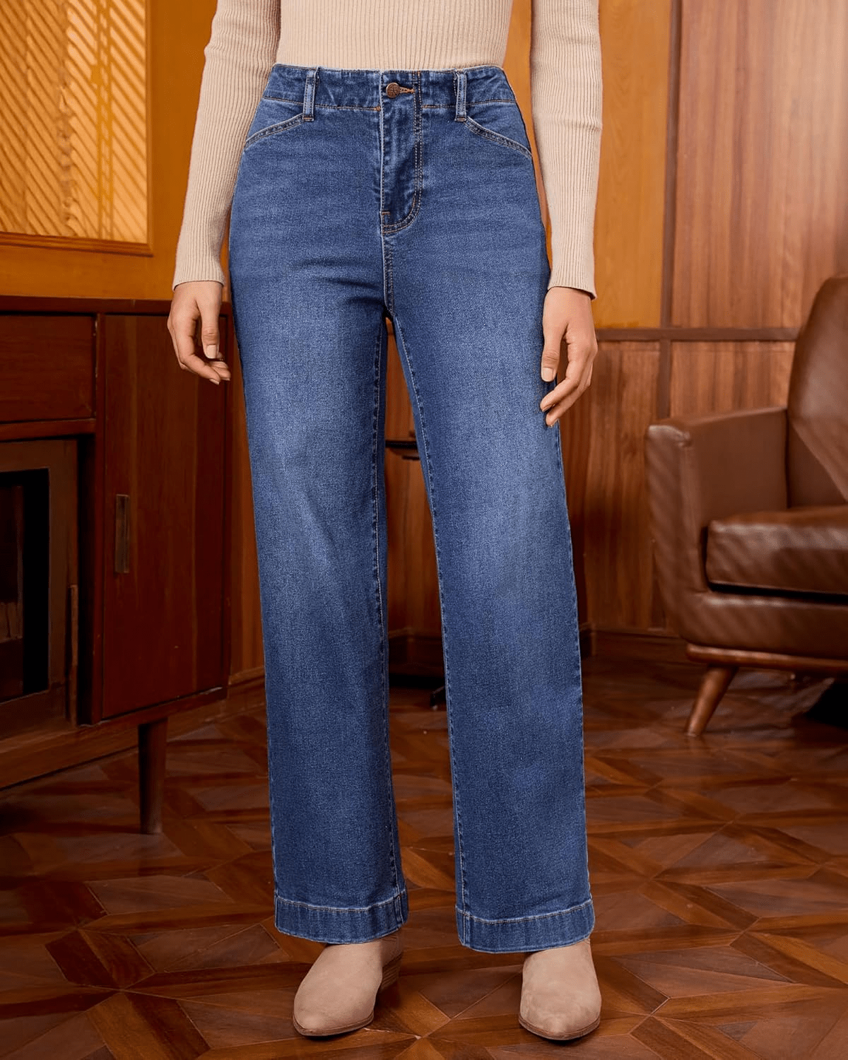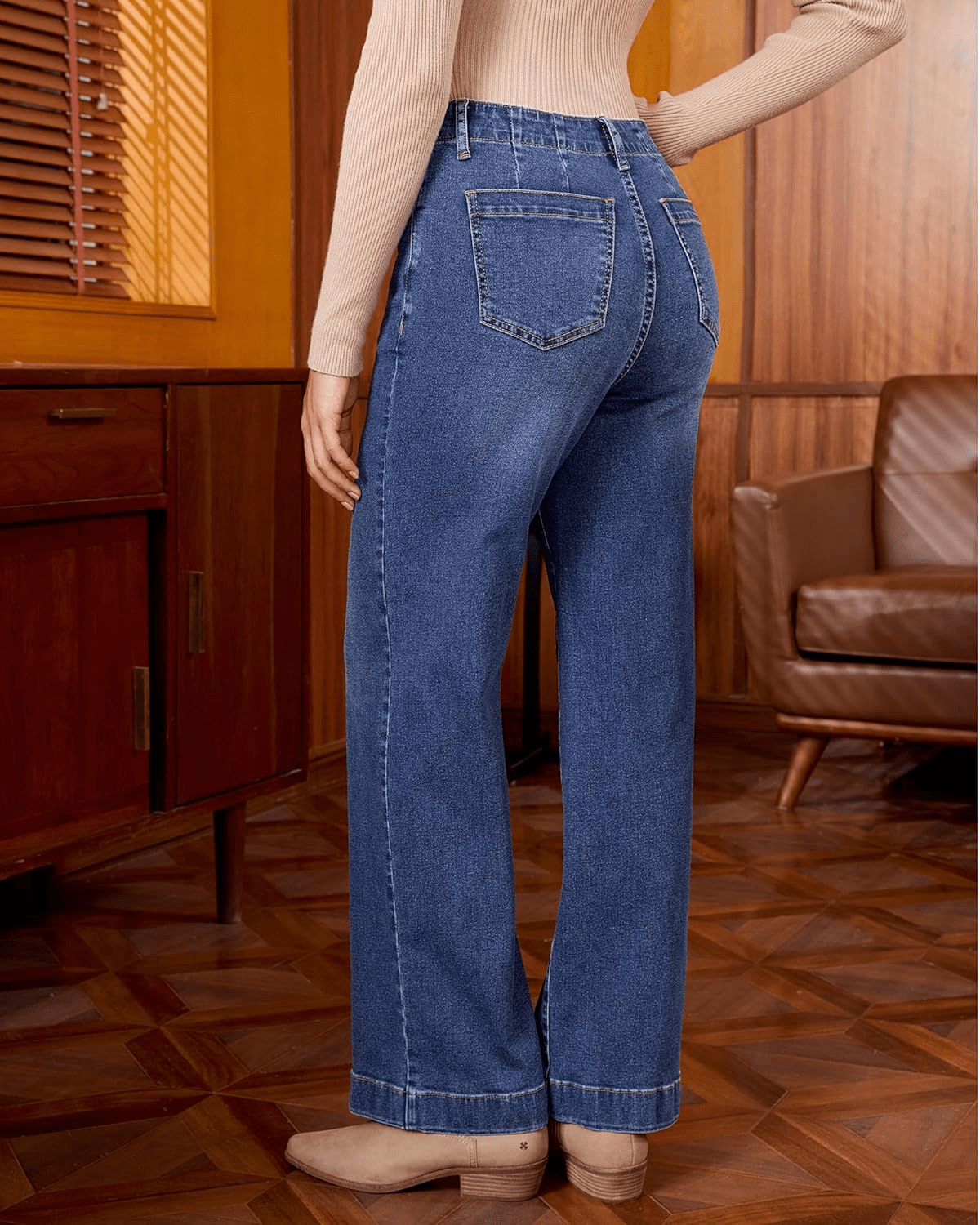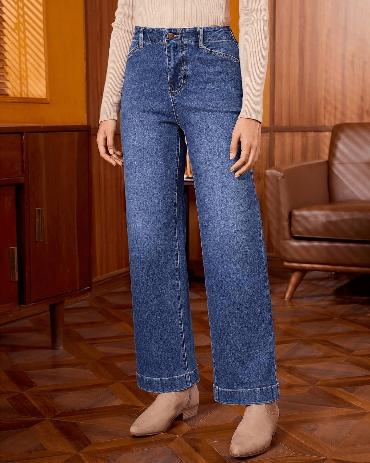 Women’s High Waist Wide Leg Jeans 30″ Inseam Trouser Denim Pants with Stretch