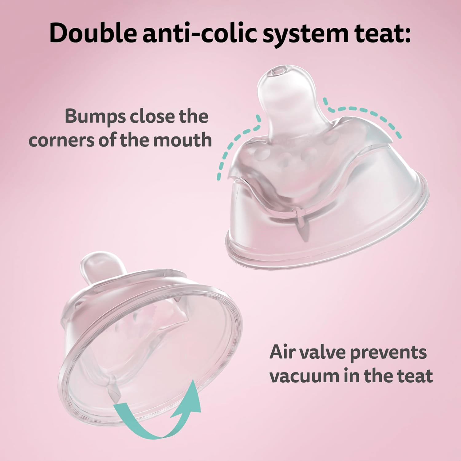 - Unique double anti-colic system minimizes air intake and reduces discomfort.