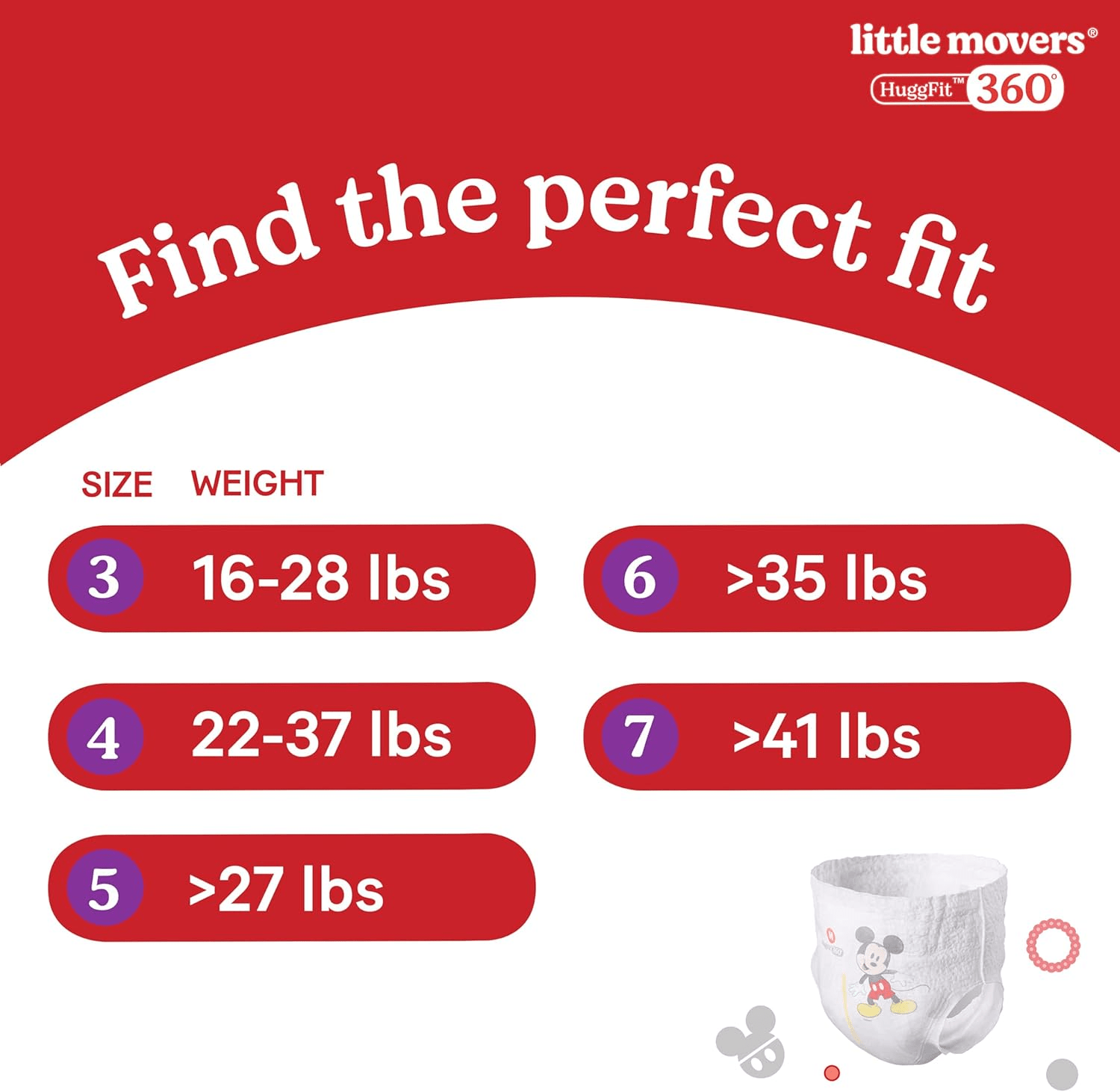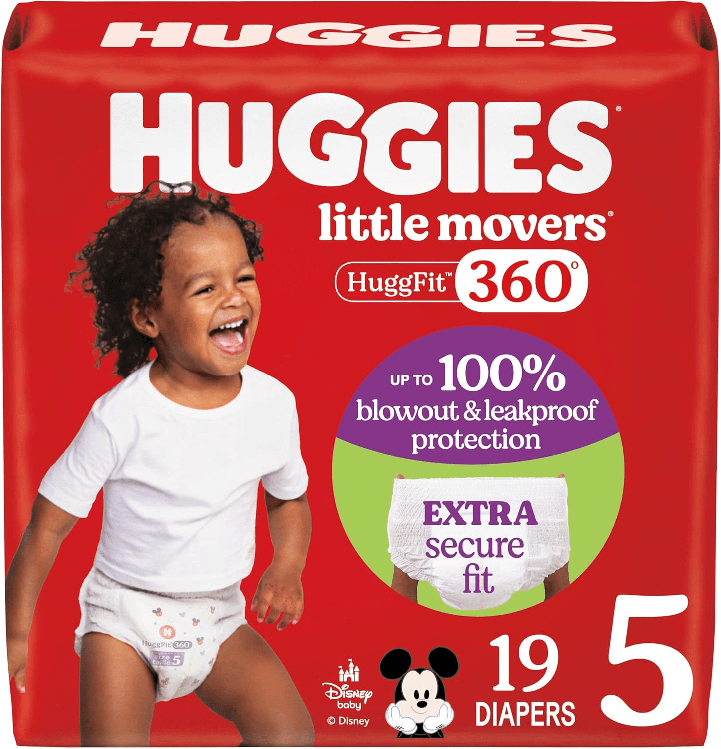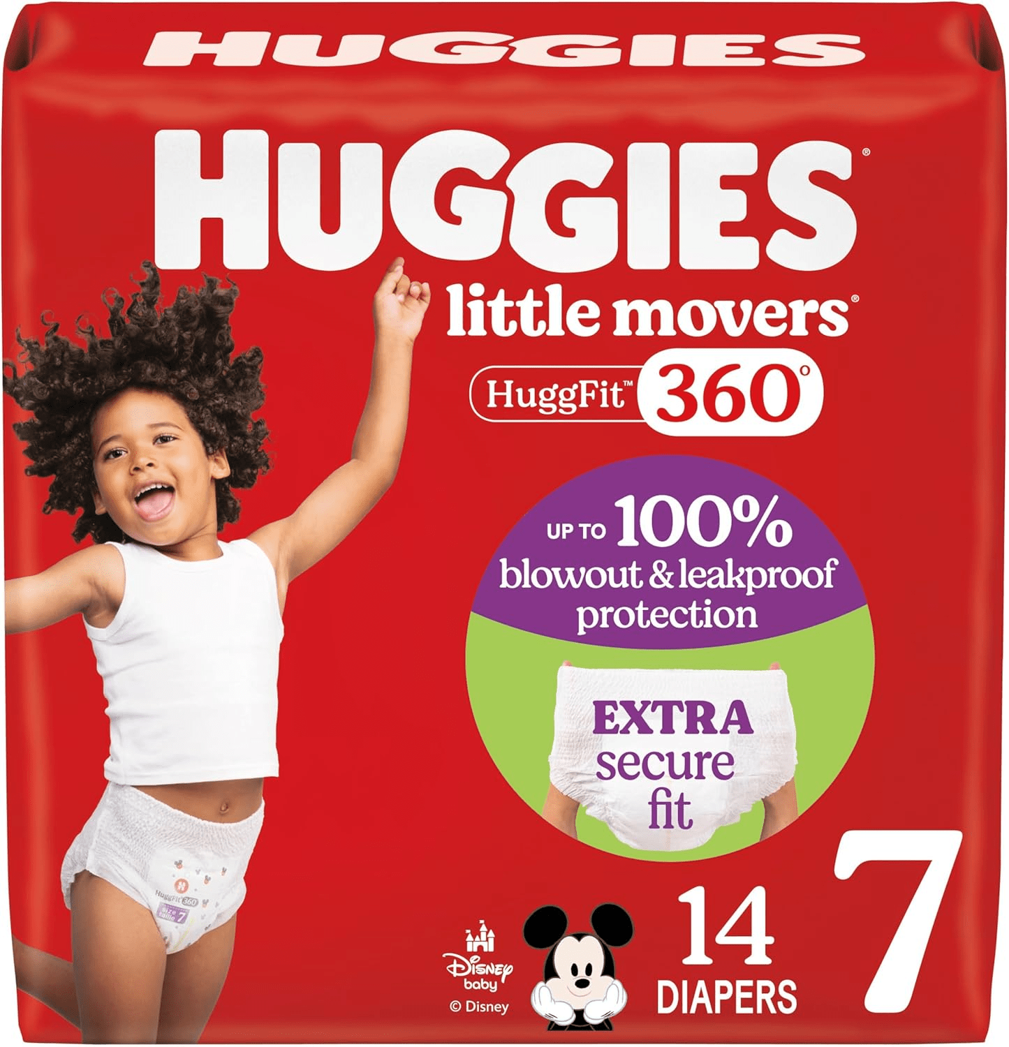 Huggies Baby Diapers, Little Movers Huggfit 360° Baby Diapers with 360° Waistband, Size 3, 4, 5, 6, 7, Small box (Count 14-26), Packaging May Vary
