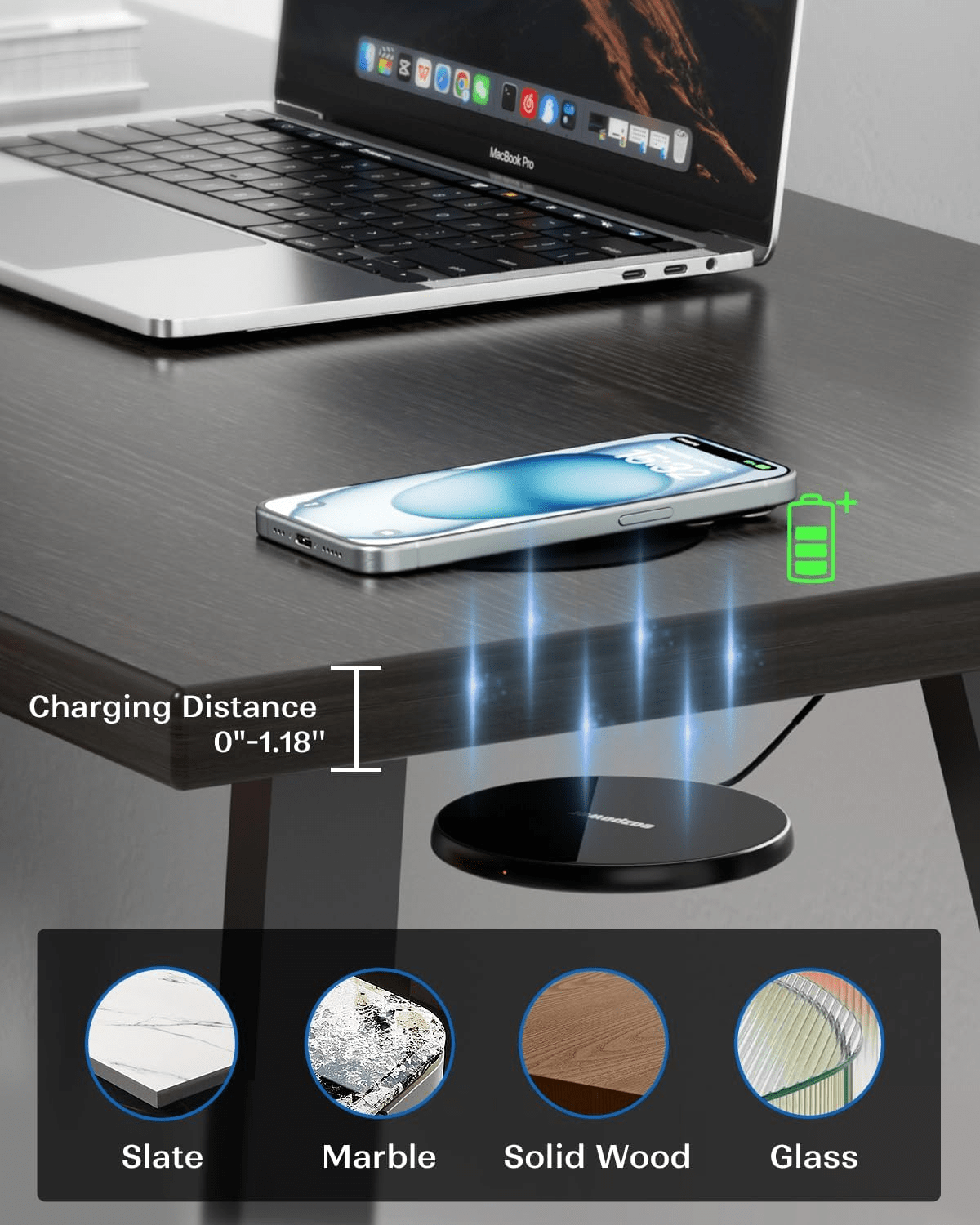 • This innovative Invisible Wireless Charger offers a unique and versatile solution for charging your devices seamlessly. Designed to be placed either on your desk or hidden beneath it, this charger operates effectively with a charging distance of up to 30mm. It can charge through diverse materials including solid wood, glass, and plastic, providing an elegant and clutter-free charging experience. Whether you choose to keep it hidden under your desk or display it on your nightstand, it transforms your workspace while helping to maintain an organized and neat environment without visible cords.