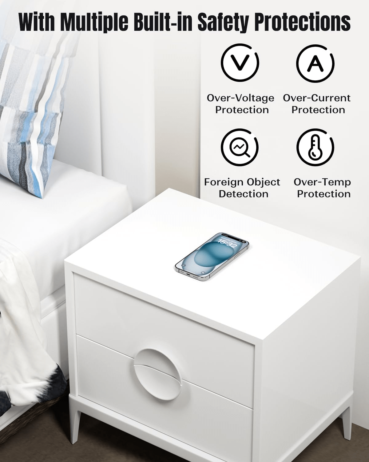 • Not only does this charger offer convenience, but it also boasts several safety features ensuring your devices are protected, allowing you to charge with peace of mind. Installation is a breeze, requiring no drilling or specialized tools—simply attach the adhesive metal ring, and you’re ready to go. The wireless charging pad is compatible with a wide range of devices, including the latest iPhone and Samsung models, making it a universally functional accessory for both home and office use.