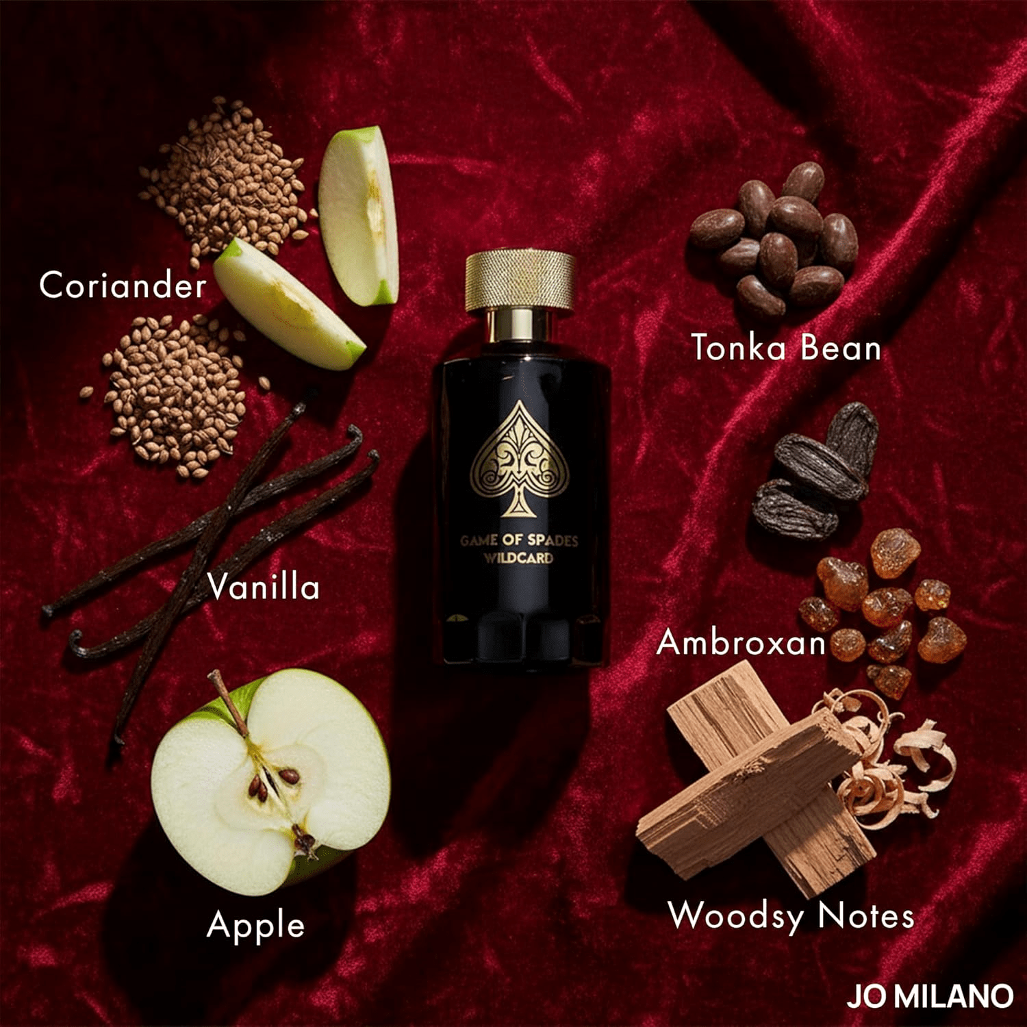 - Fresh Citrus and Floral Opening: The Jo Milano Game of Spades Wildcard Parfum Spray opens with an invigorating burst of bright bergamot, intertwined with delicate floral nuances and a subtle hint of coriander. This dynamic introduction embodies a bold and energetic spirit, reflecting masculine sophistication.