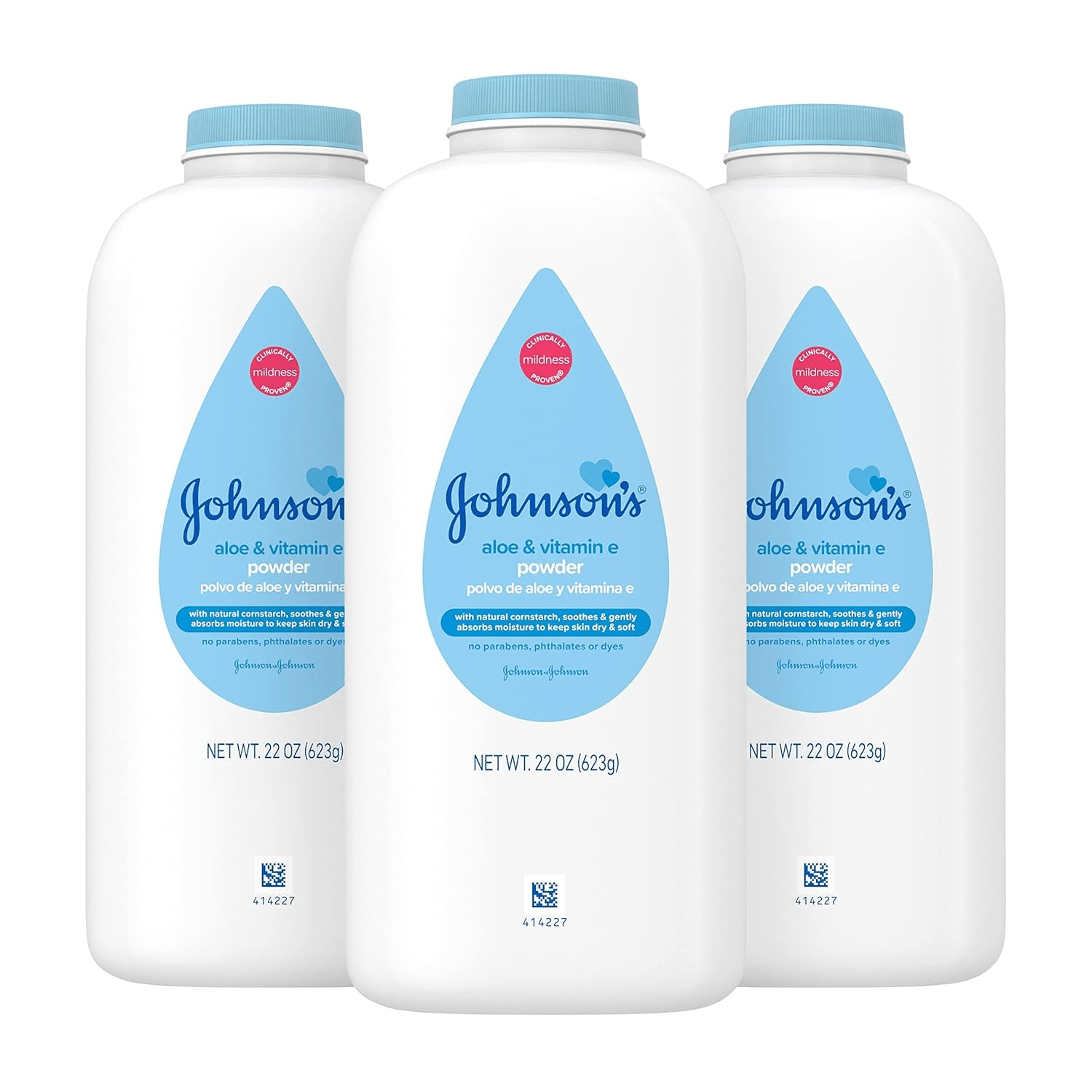 - Each 22-ounce pack of Johnson’s Baby Powder, enriched with naturally derived cornstarch, aloe, and vitamin E, offers a gentle solution for soothing and protecting your baby’s delicate skin. This premium powder effectively absorbs moisture, ensuring that your little one’s skin stays dry while leaving it soft to the touch.