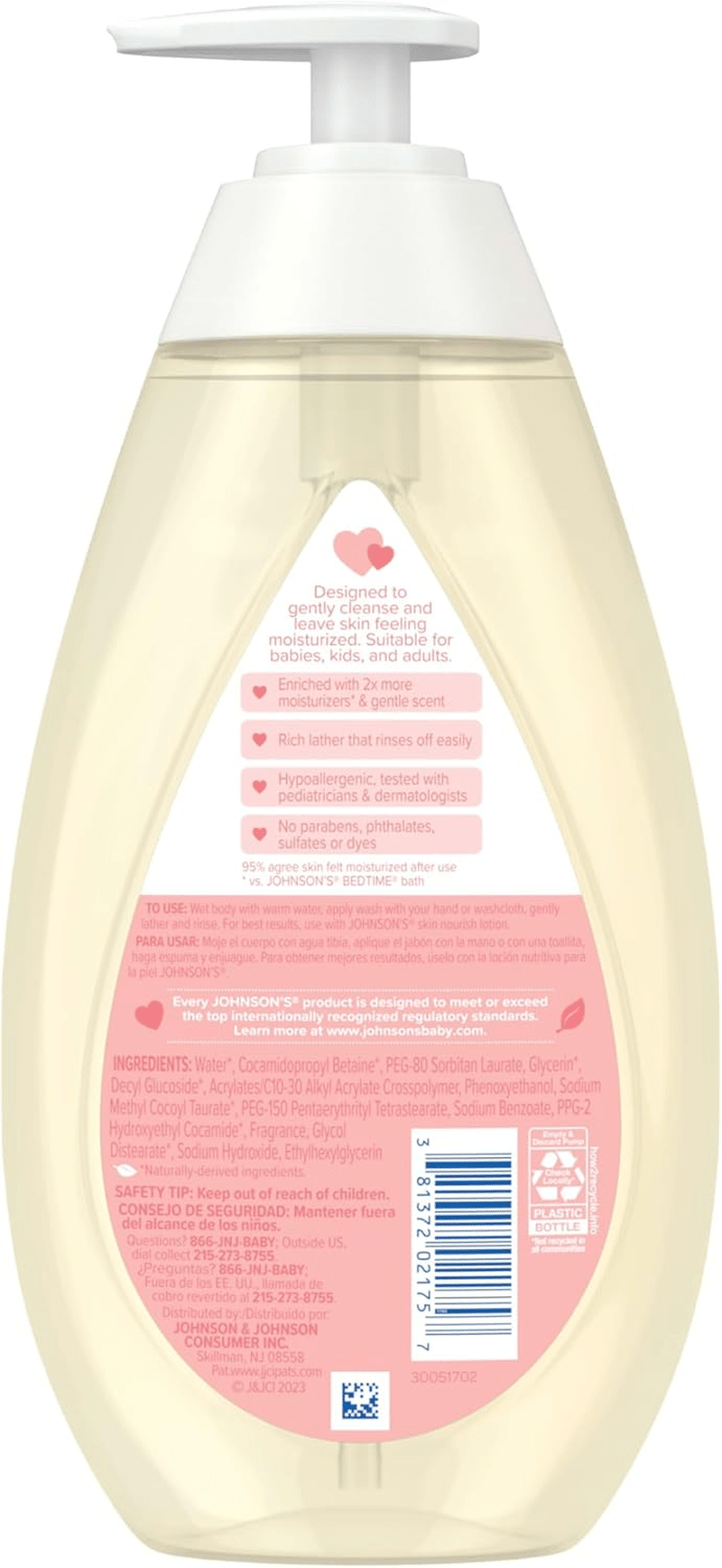 - This moisturizing wash is designed to cater to the specific needs of baby’s developing skin, enriched with 2x more moisturizers for enhanced hydration. An impressive 95% of caregivers agree that their baby’s skin felt moisturized after using this product, demonstrating its effectiveness. The No More Tears formula is gentle on the eyes as pure water, allowing parents to cleanse their baby’s skin without worry. This pediatrician- and dermatologist-tested wash is hypoallergenic, free from harmful chemicals such as parabens and sulfates, and safe for all ages, making it a versatile choice for the whole family.