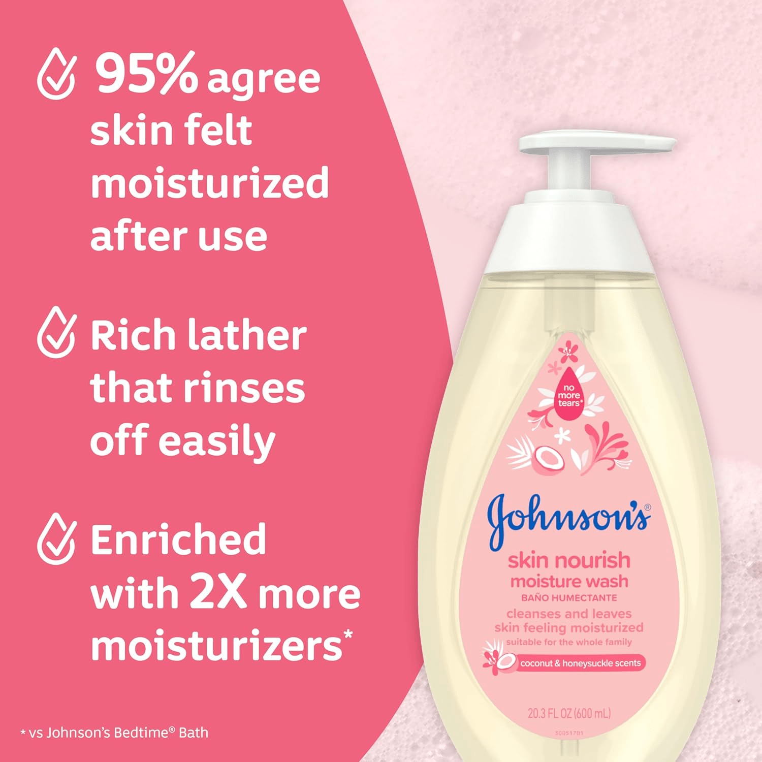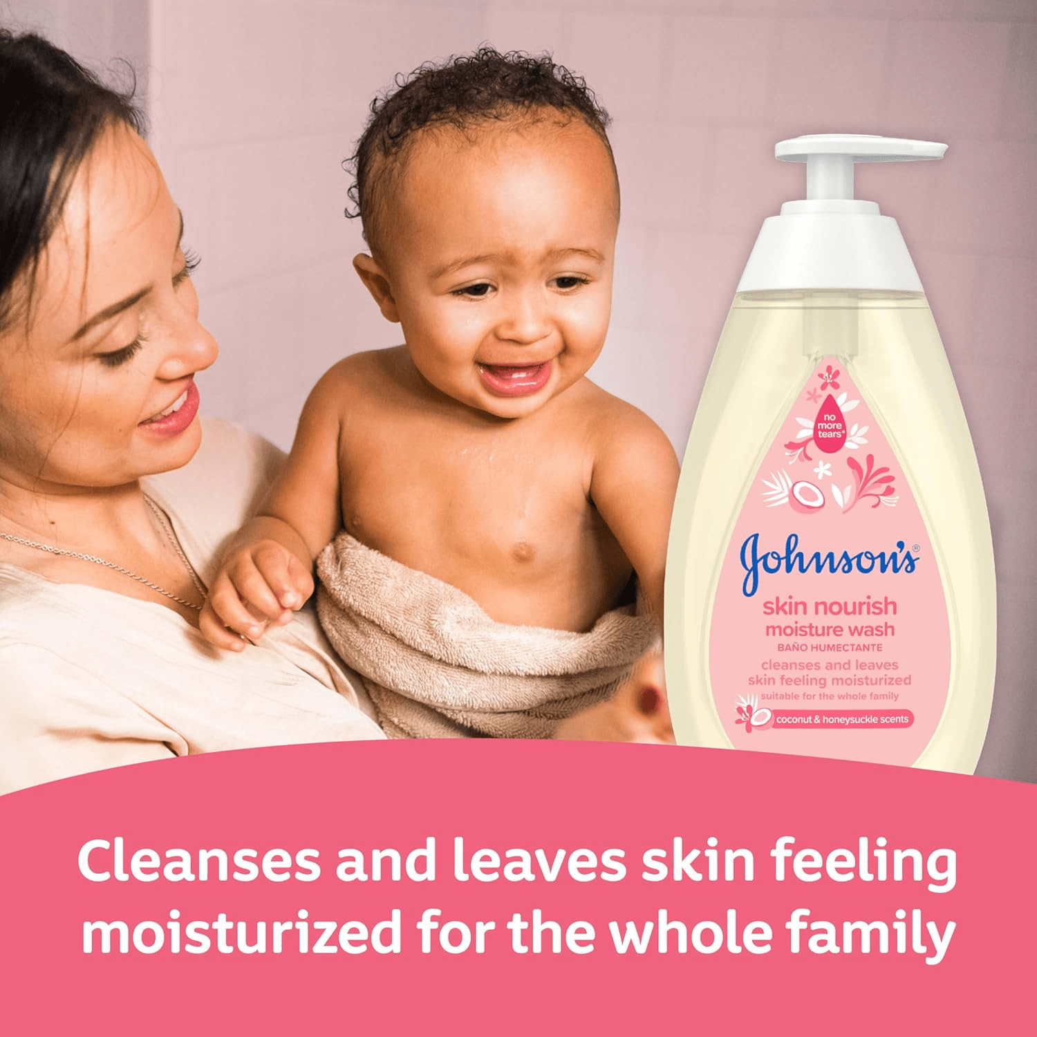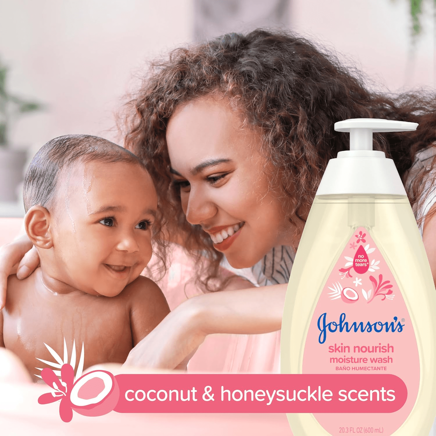 - Experience the gentle care of Johnson’s Baby Skin Nourish Moisture Wash, a luxurious 20.3-fluid ounce baby body wash infused with a delightful coconut and honeysuckle scent. Specially formulated to cleanse your baby’s delicate skin, this body wash not only leaves the skin feeling soft but also deeply moisturized, making it an ideal choice for daily bath time rituals. Its rich lather rinses off effortlessly, ensuring that bath time is a joyful experience for both parents and children. This product also makes a thoughtful baby shower gift, setting the tone for nurturing care from the very start.