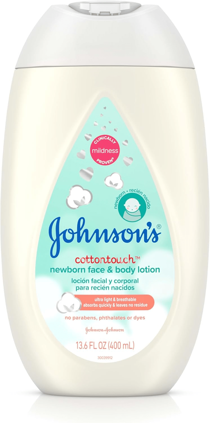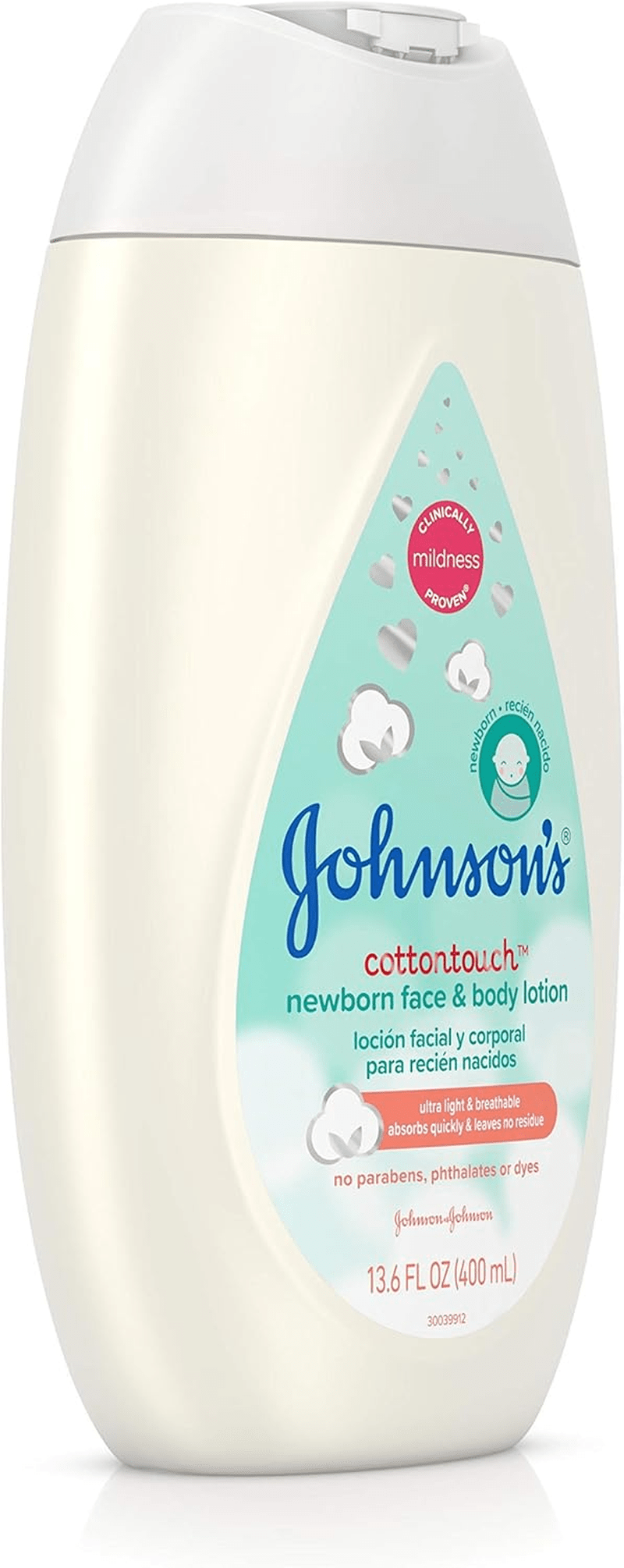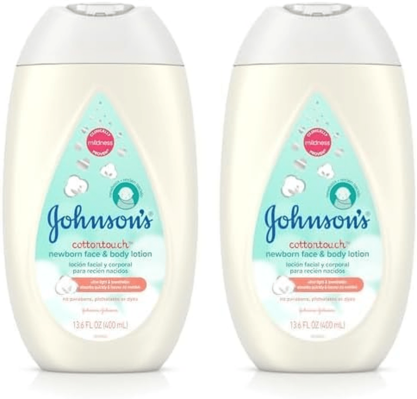 - 13.6-fluid ounce bottle of Johnson’s CottonTouch Newborn Baby Face & Body Lotion designed to nourish and hydrate your baby’s delicate skin