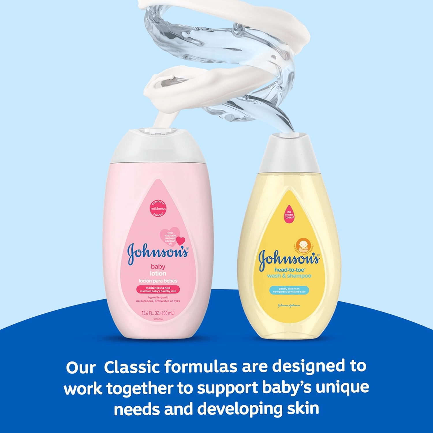 • Gentle Head-To-Toe Baby Body Wash & Shampoo designed to cleanse skin and hair without irritation