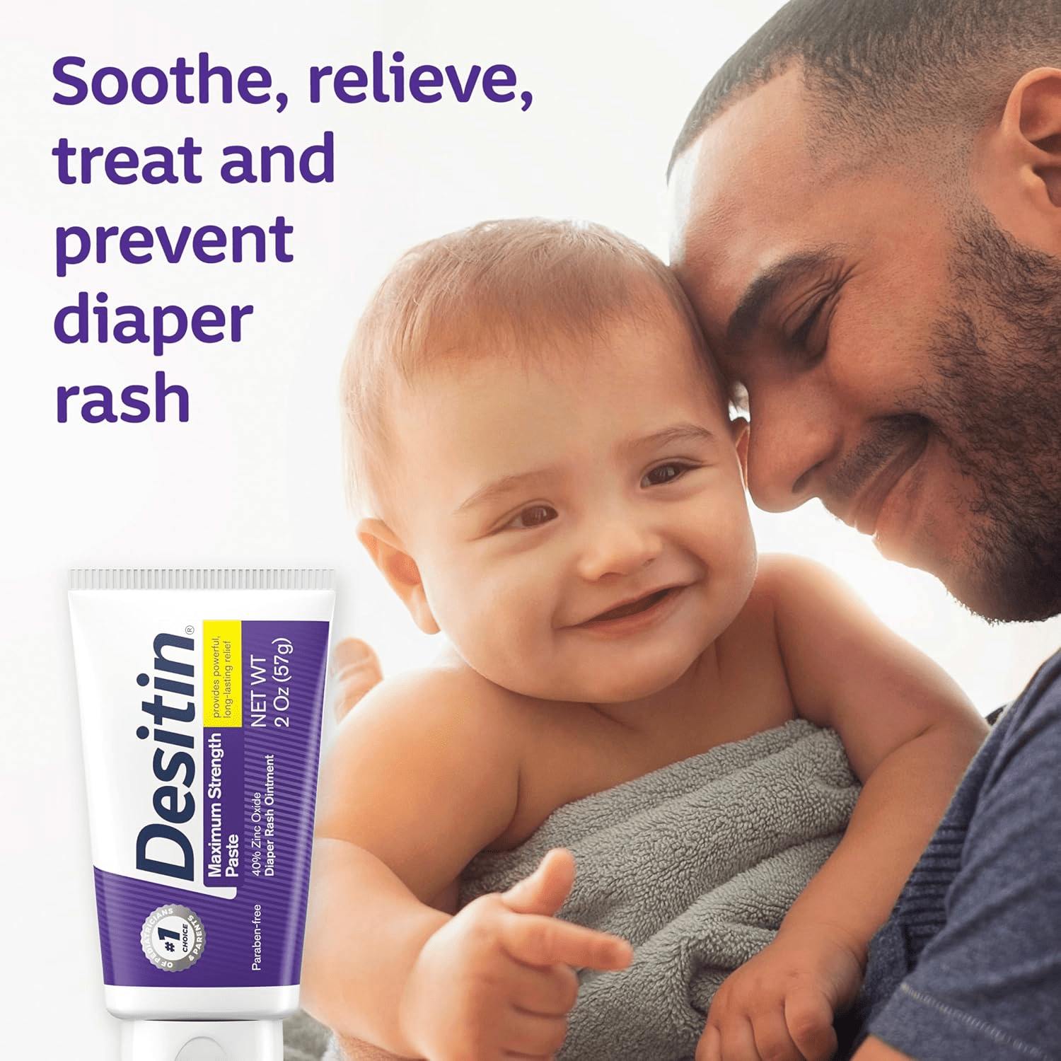 • Desitin Maximum Strength Diaper Rash Paste to treat and prevent diaper rash discomfort
