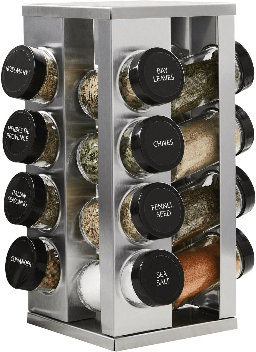 - SMART & STYLISH DESIGN: rotates for easy access to spices on countertops or in cabinets; stainless steel construction adds a modern look to your kitchen