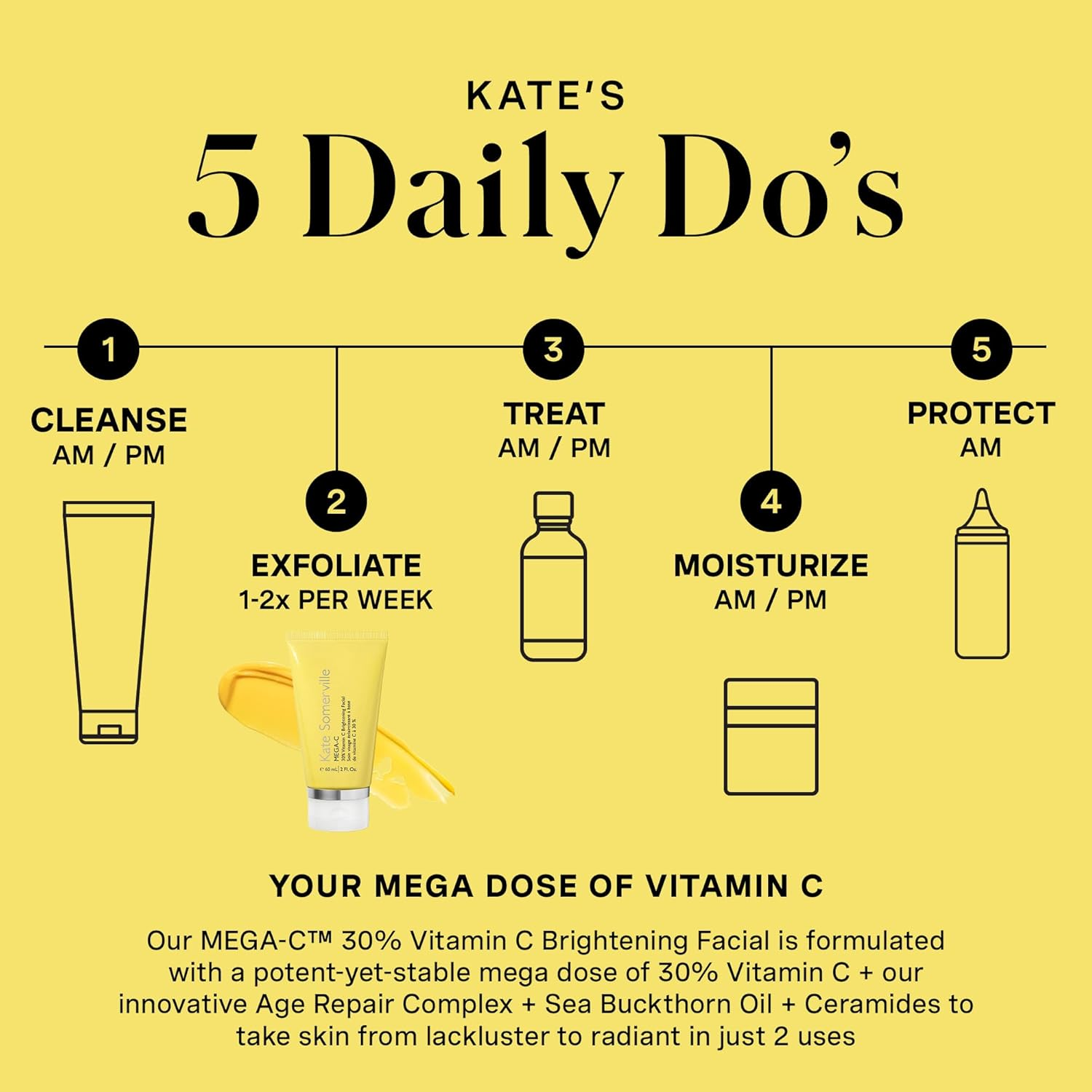 Kate Somerville Mega-C 30% Vitamin C Brightening Facial Mask – Clinic-Grade Treatment to Brighten, Even Skin Tone & Firm, 2 Fl Oz