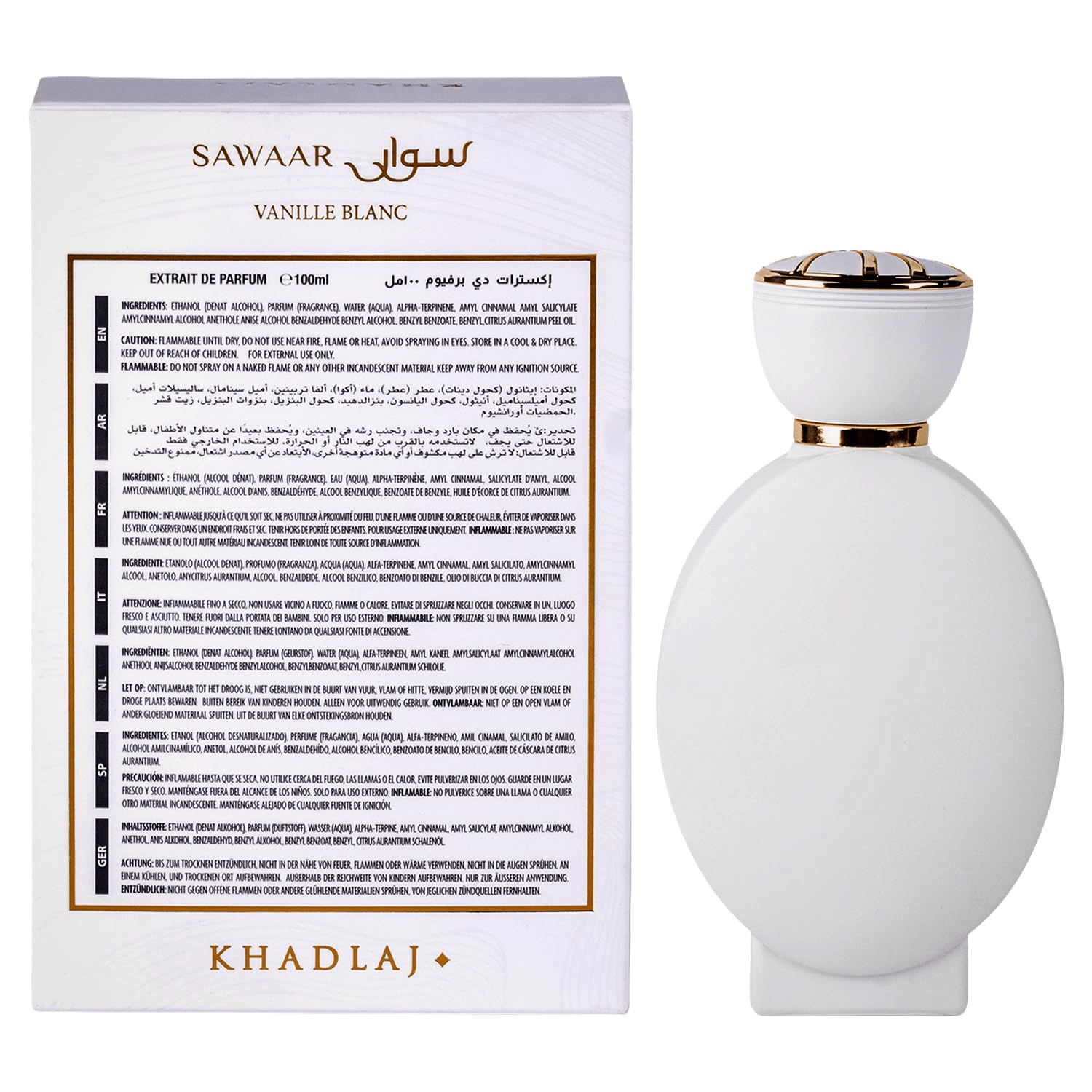 Elevate your fragrance experience with Khadlaj Sawaar Vanille Blanc Extrait de Parfum, a beautifully crafted unisex perfume that embodies the essence of sweetness and warmth. Perfect for both men and women, this exquisite scent opens with delightful top notes of creamy vanilla, velvety powdered sugar, and crisp apple, ensuring a welcoming first impression. As the fragrance evolves, it transitions into a heart of sophisticated amber, delicate white florals, and soft cashmere, creating a dynamically layered experience that is both luxurious and inviting.