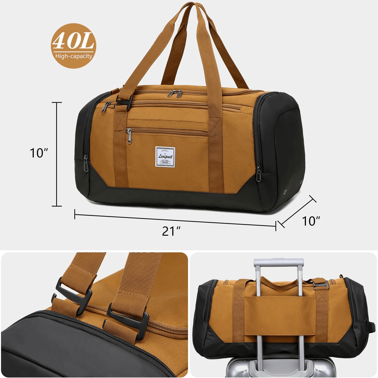• 40L Medium Gym Bags for Men: The Laripwit gym duffle bag is expertly crafted to accommodate all your workout or travel essentials, providing ample space with a capacity of 40 liters. Measuring 21 x 10 x 10 inches, this versatile bag is ideal for various activities such as gym sessions, weekend getaways, yoga, or any adventure you embark on—perfectly adapting to your active lifestyle.