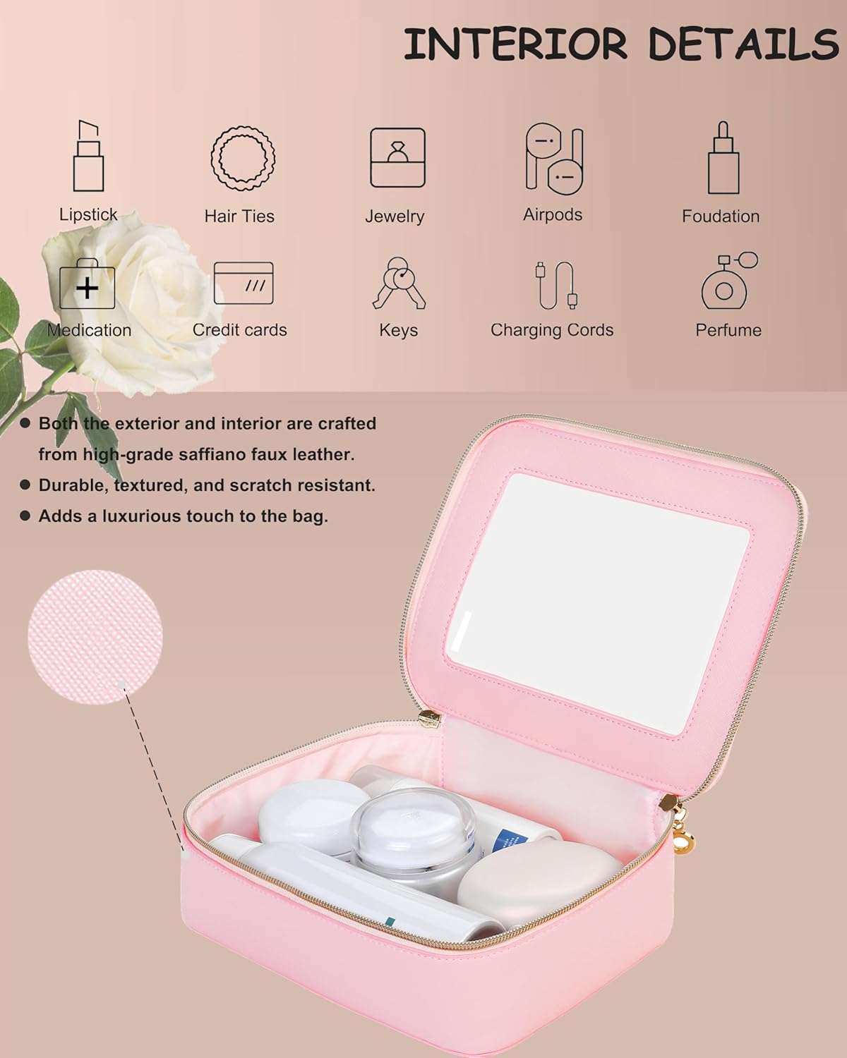 - High-Quality Material: Crafted from premium PU leather and equipped with polished hardware, these waterproof clear cosmetic bags are not only elegant but also durable. They can be easily cleaned by wiping with a damp cloth for maintenance.