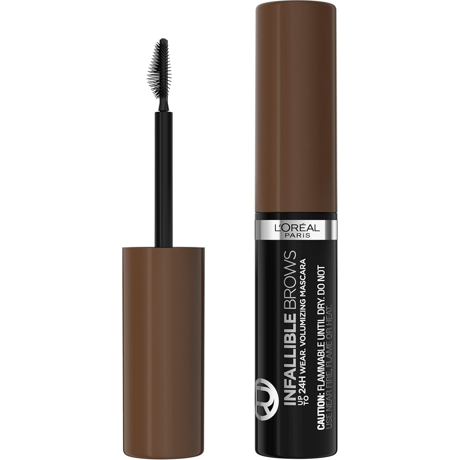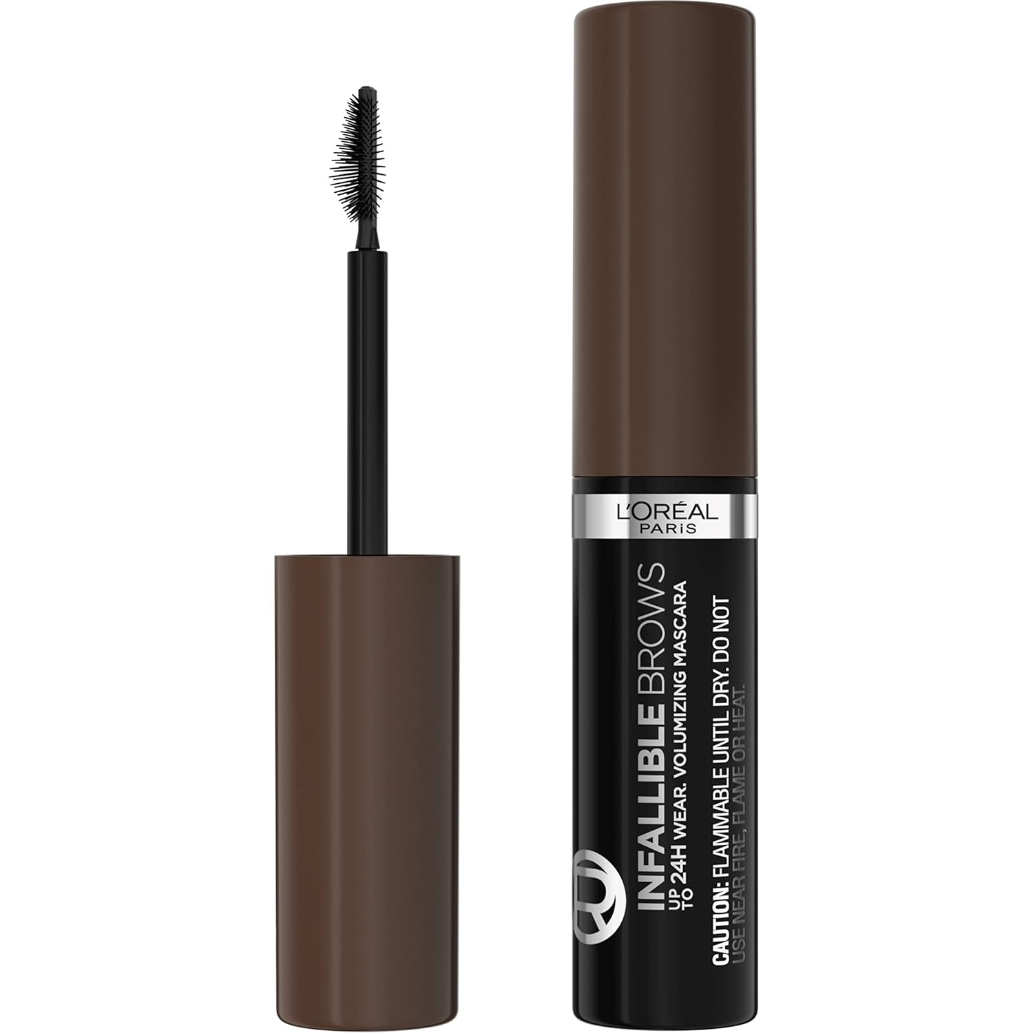 - Experience the transformative power of L’Oreal Paris Infallible Volumizing Brow Mascara, specially designed to deliver up to 24 hours of long-lasting wear. This lightweight, fiber-charged formula instantly enhances the thickness and volume of your eyebrows, creating the appearance of brows that are up to 2X fuller. Ideal for daily use, this eyebrow gel effortlessly glides on and allows for the perfect definition of your brow arches, ensuring you achieve a polished look that lasts all day.