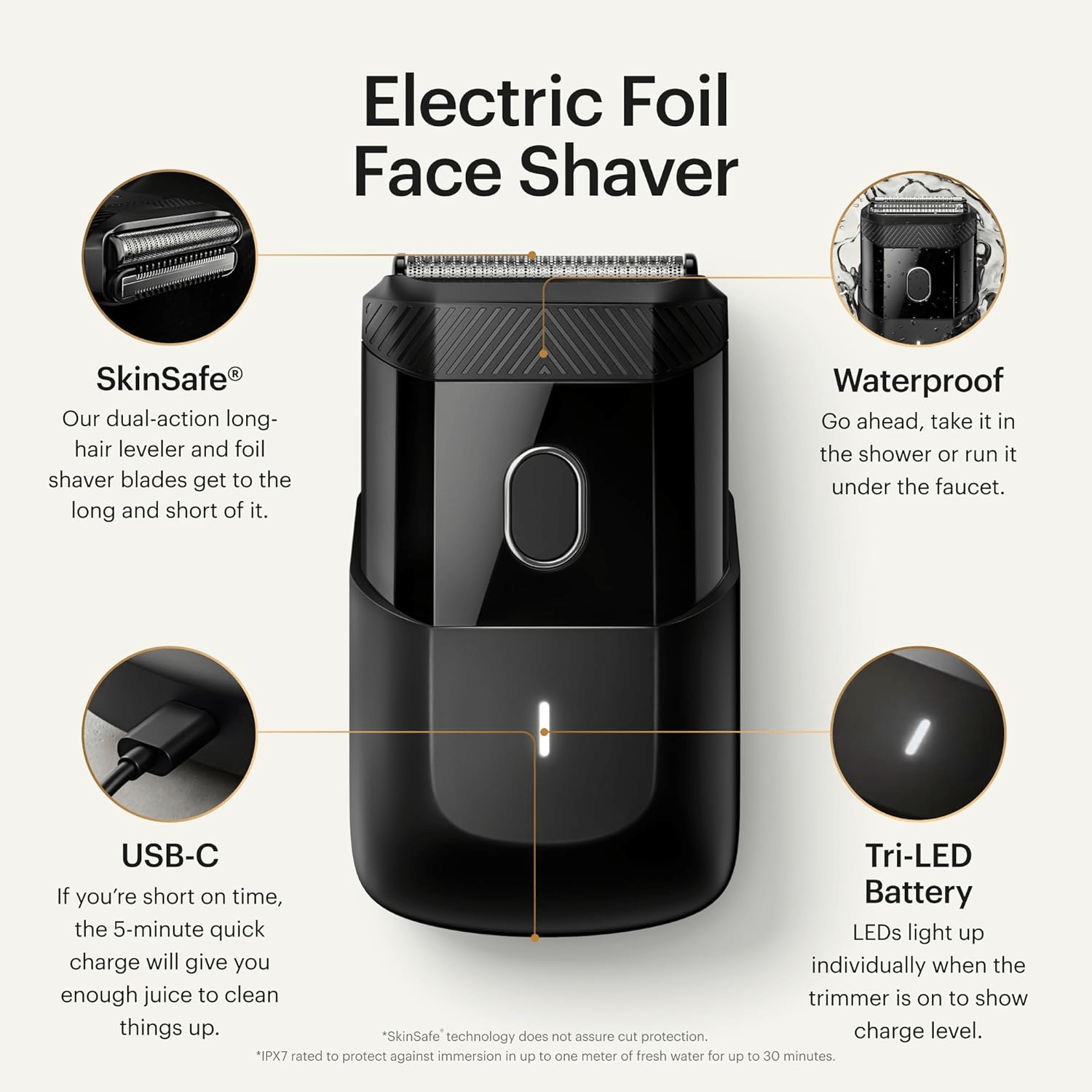 - THE HANDYMAN: Our precision compact electric foil face shaver is equipped with a dual-action SkinSafe blade head that includes a long-hair leveler and a foil shaver blade.