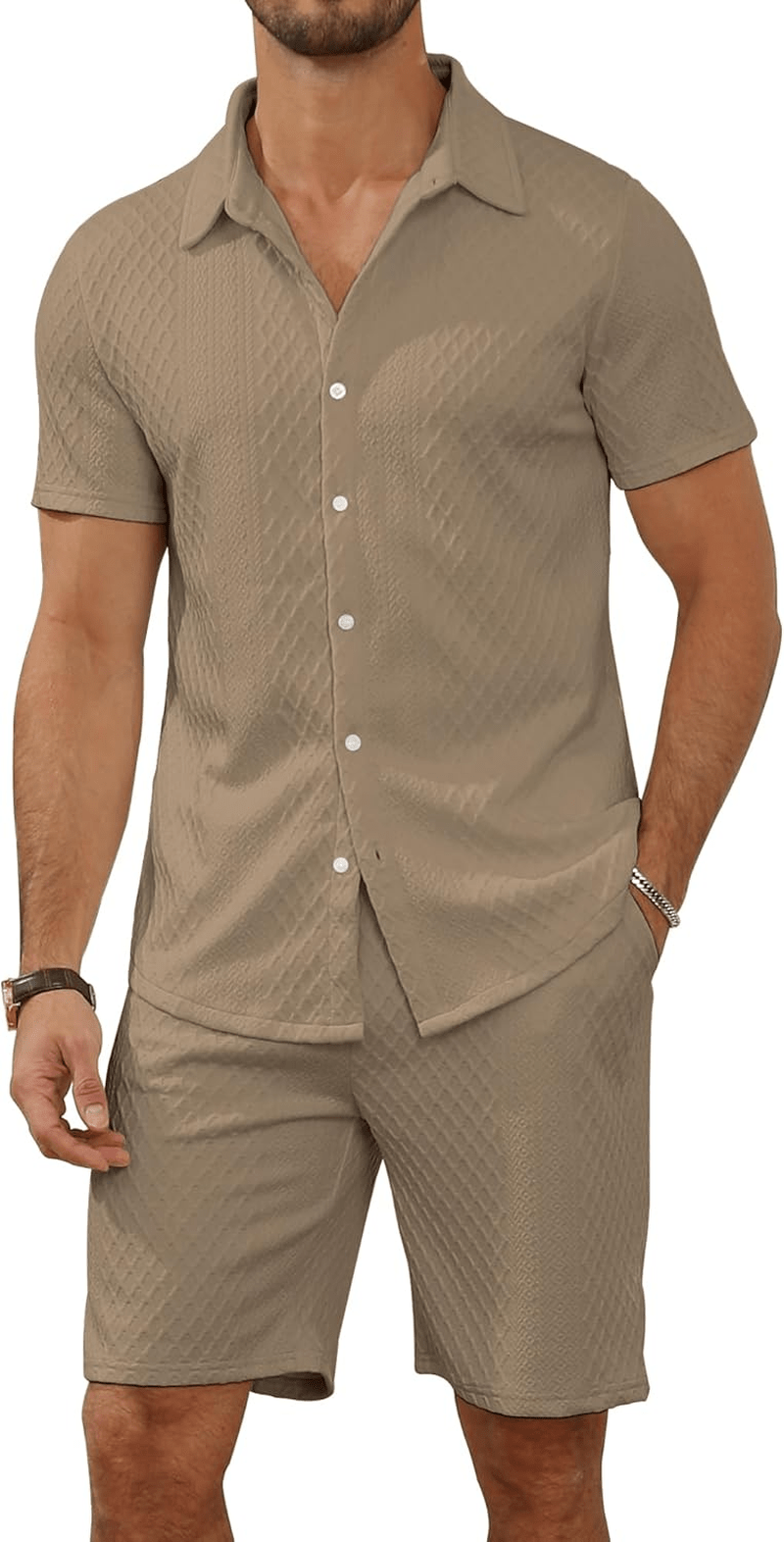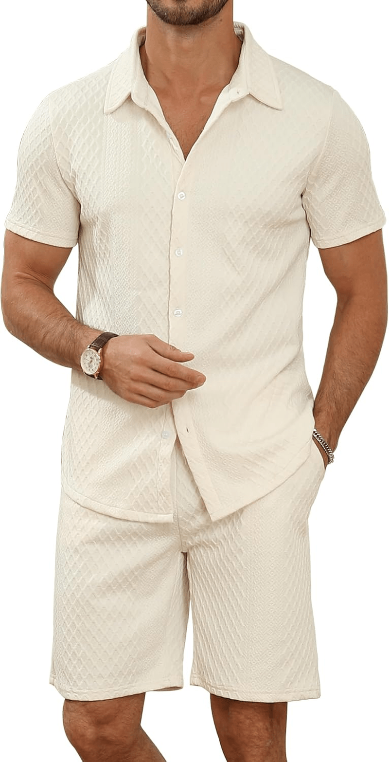 This men’s button down shirt and shorts set is crafted from premium, soft and lightweight fabric that keeps you feeling fresh and dry during warm weather activities.