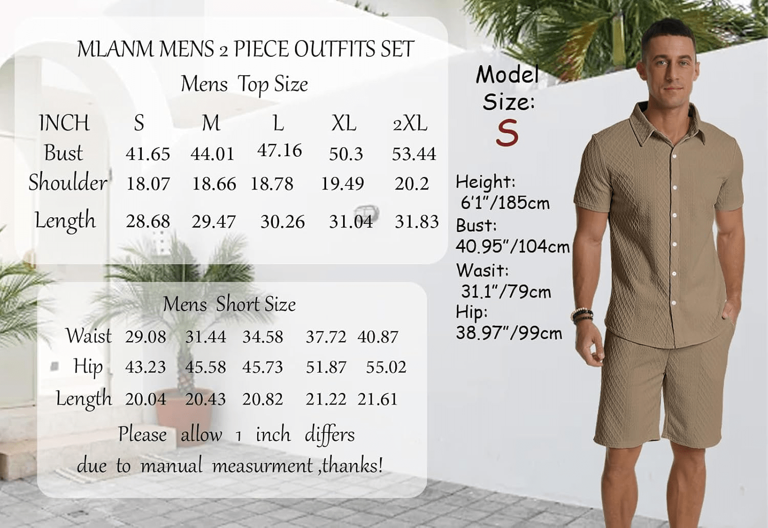 MLANM Mens 2 Pieces Outfit Casual Summer Beach Outfits