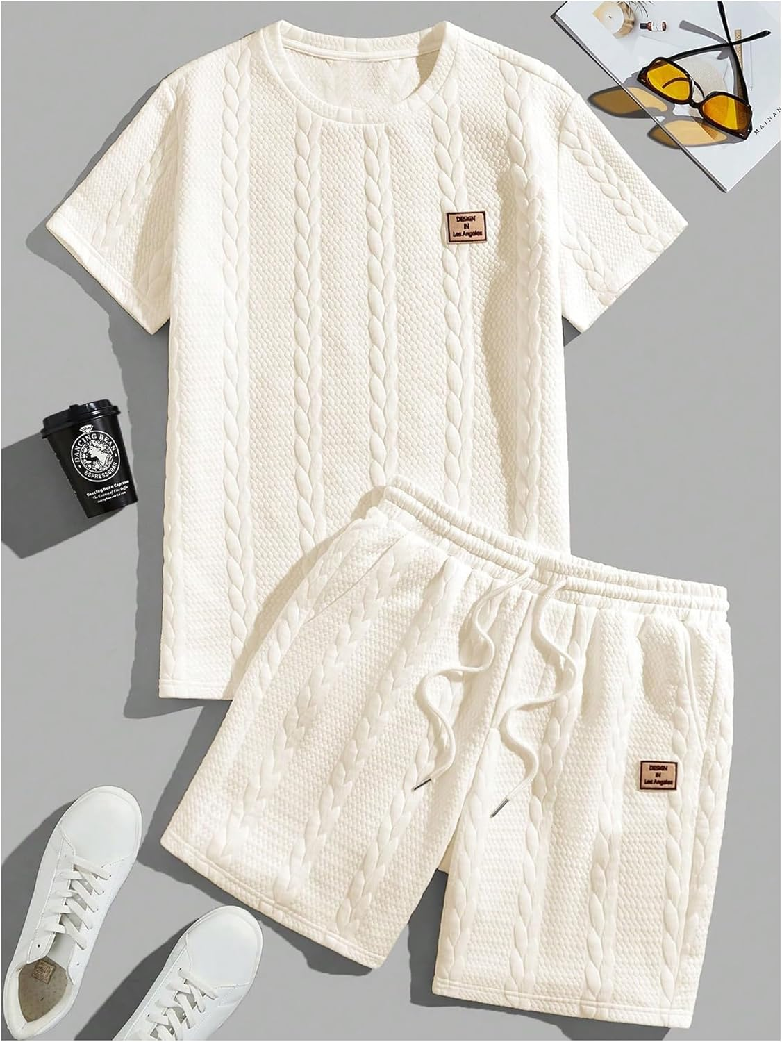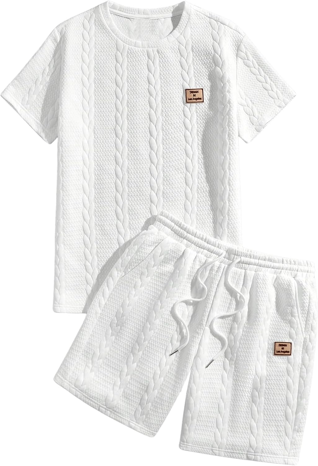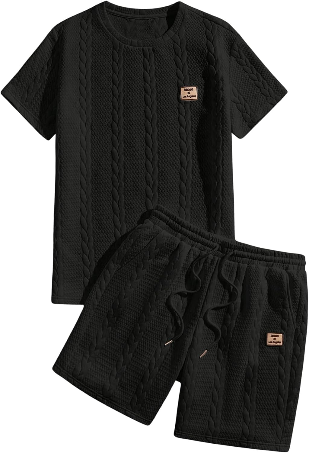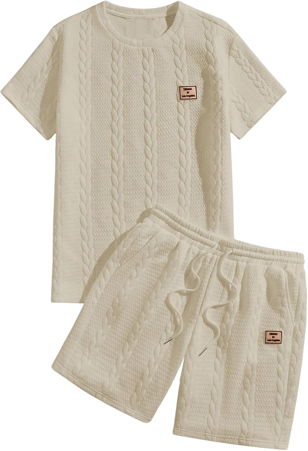 Introducing the Floerns Men's 2 Piece Outfits Cable Knit Crewneck Tee and Shorts Sets, designed for the modern man seeking comfort without compromising on style. Made from high-quality materials, this ensemble offers both breathability and durability, making it ideal for lounging at home, running errands, or enjoying a casual outing with friends. The soft fabric will keep you comfortable all day long, while the trendy cable knit design adds a touch of sophistication to your casual wardrobe.