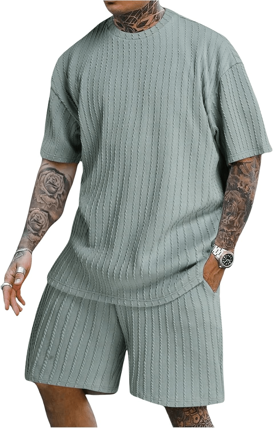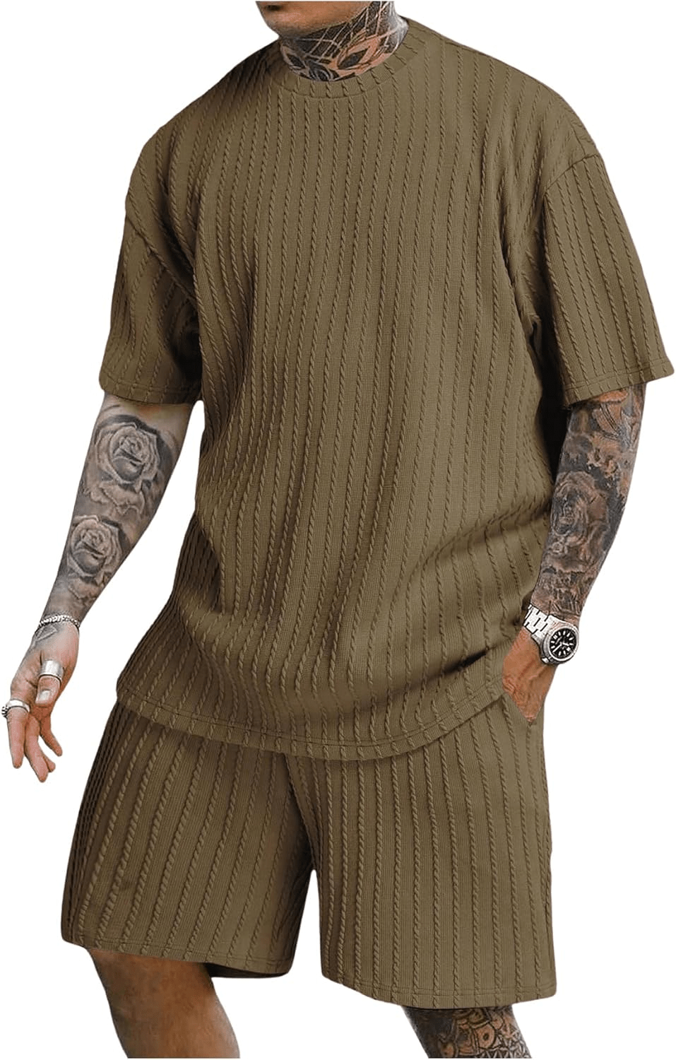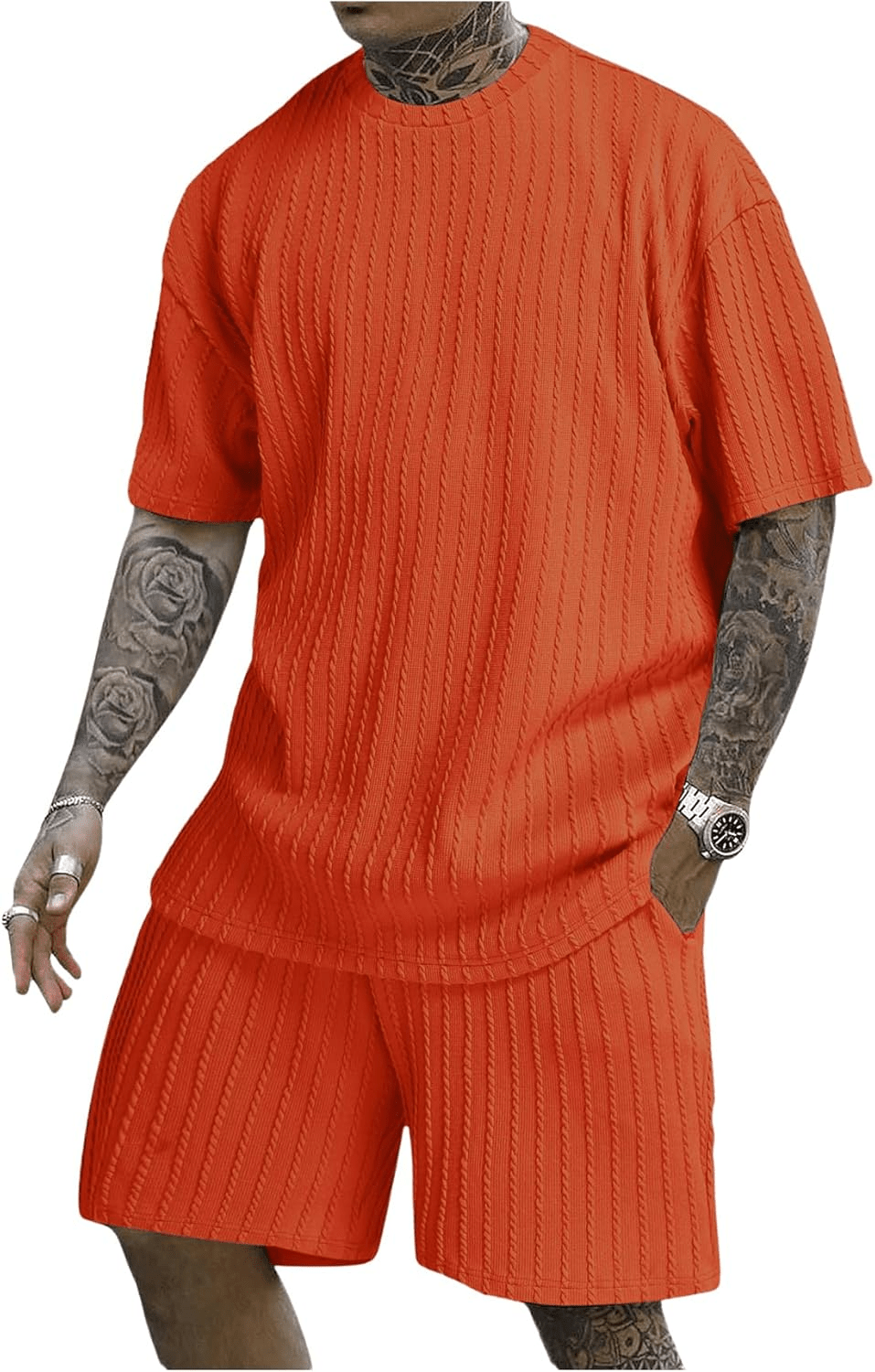 Men’s 2 Piece Outfits Crewneck T Shirt and Drawstring Casual Track Shorts Set