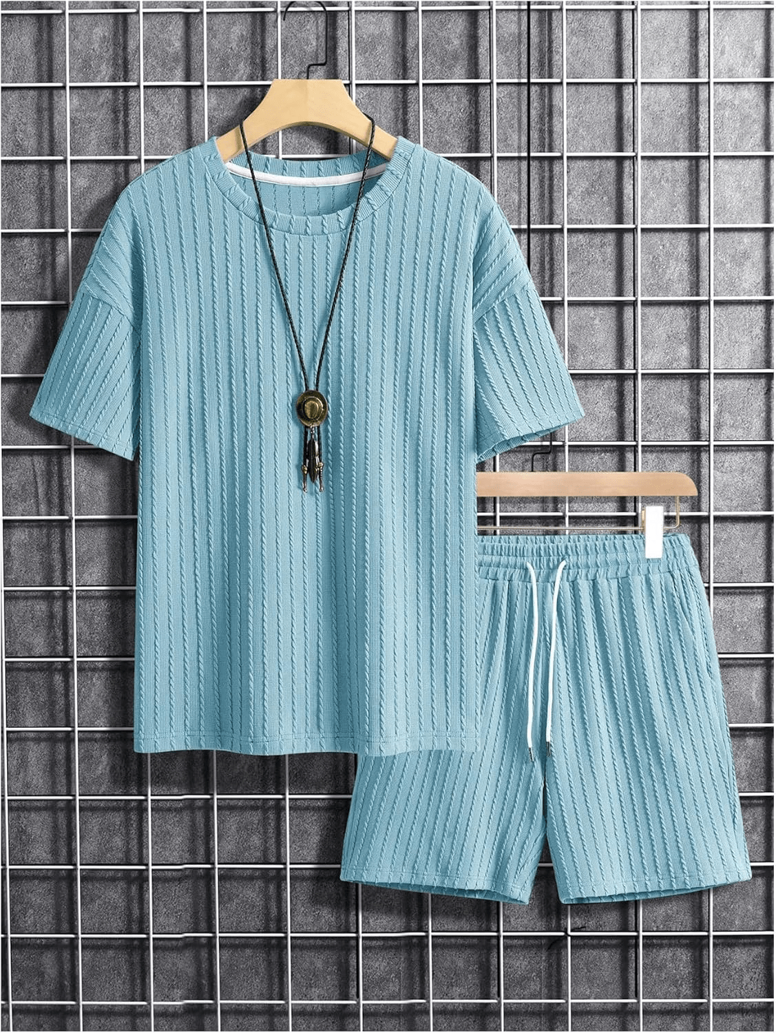 Men’S 2 Piece Outfits Short Sleeve Crewneck Summer T Shirt and Drawstring Casual Track Shorts Set