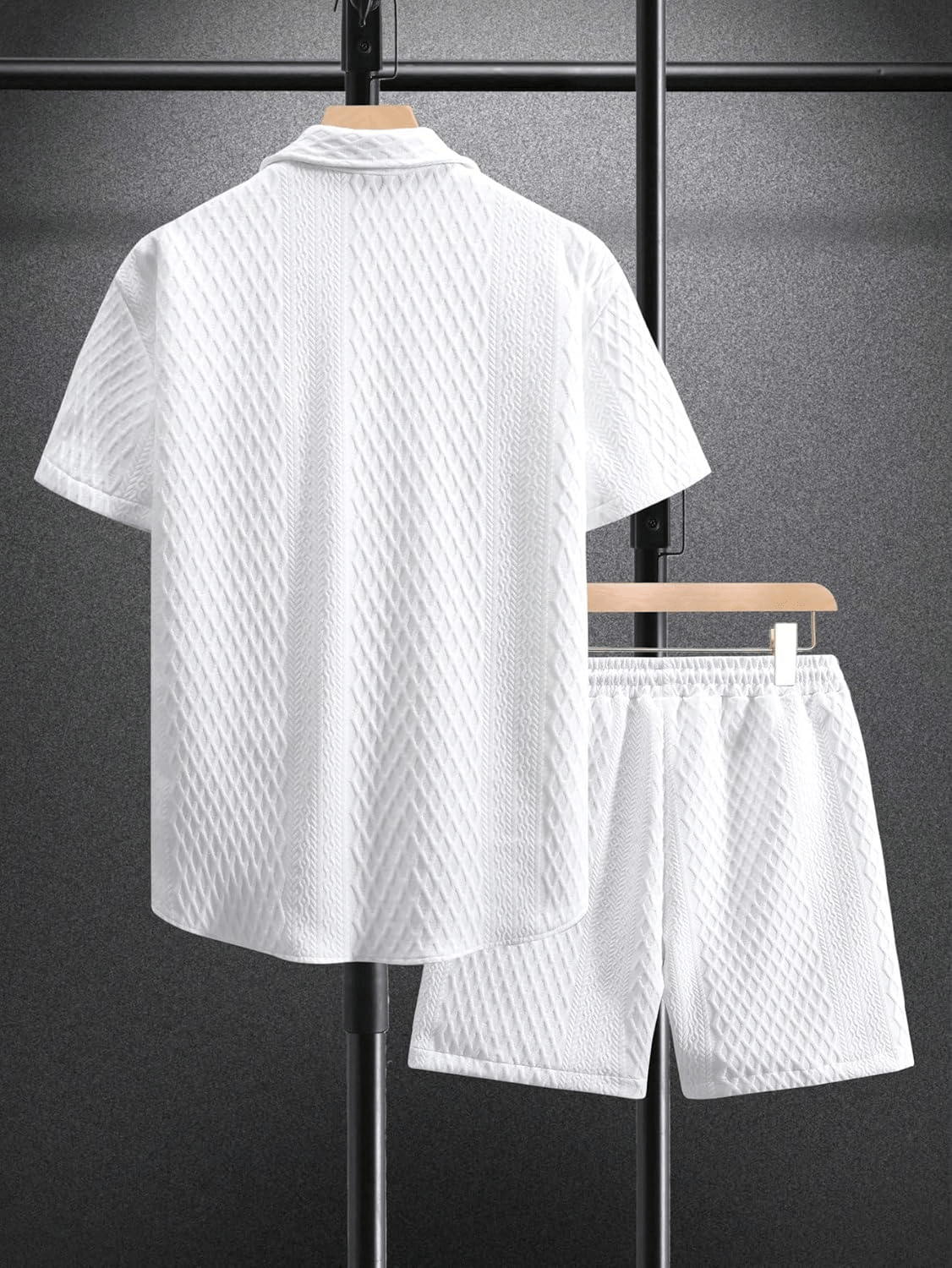 Men’s 2 Piece Outfits Waffle Knit Button Down Shirt Top and Shorts Set