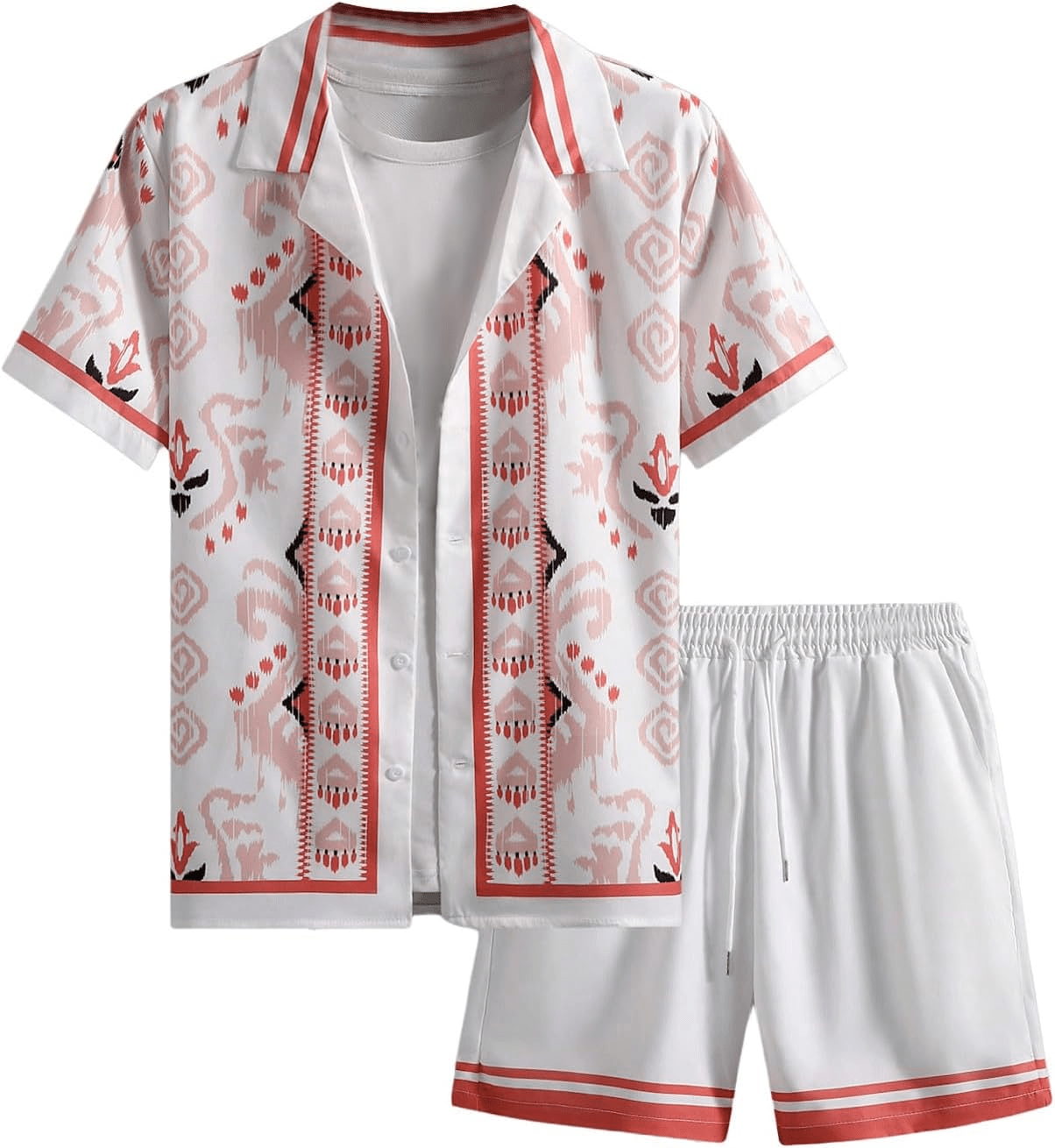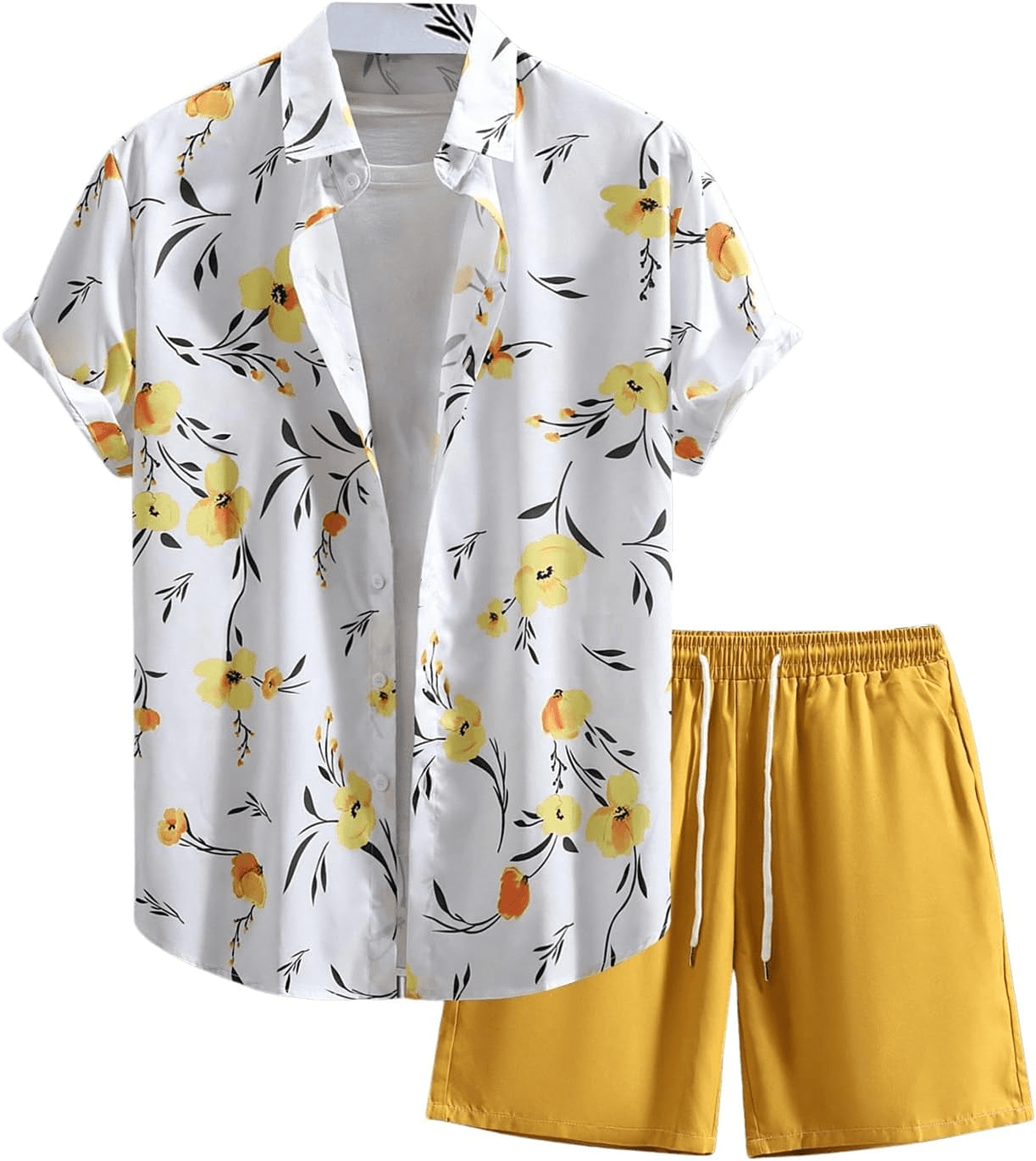 Cruise Outfits Floral Short Sleeve Shirt and Shorts Vacation Outfits for Men
