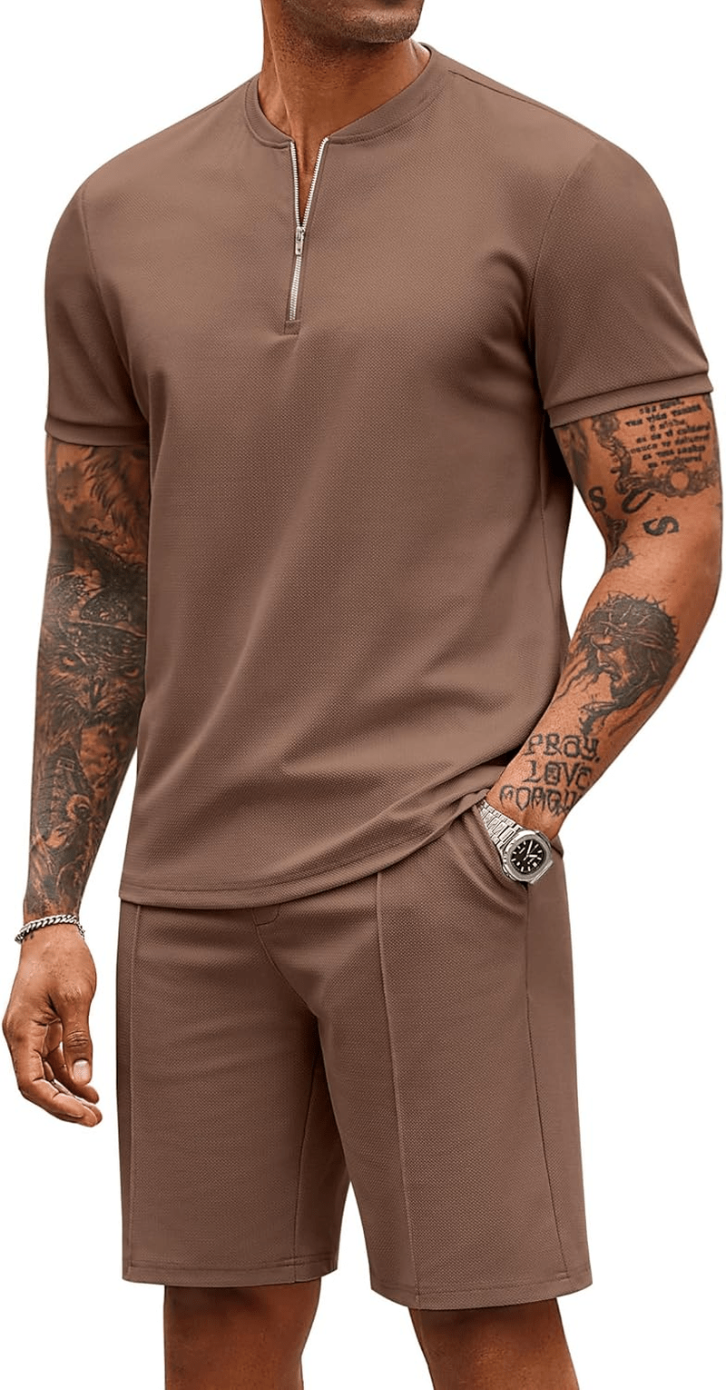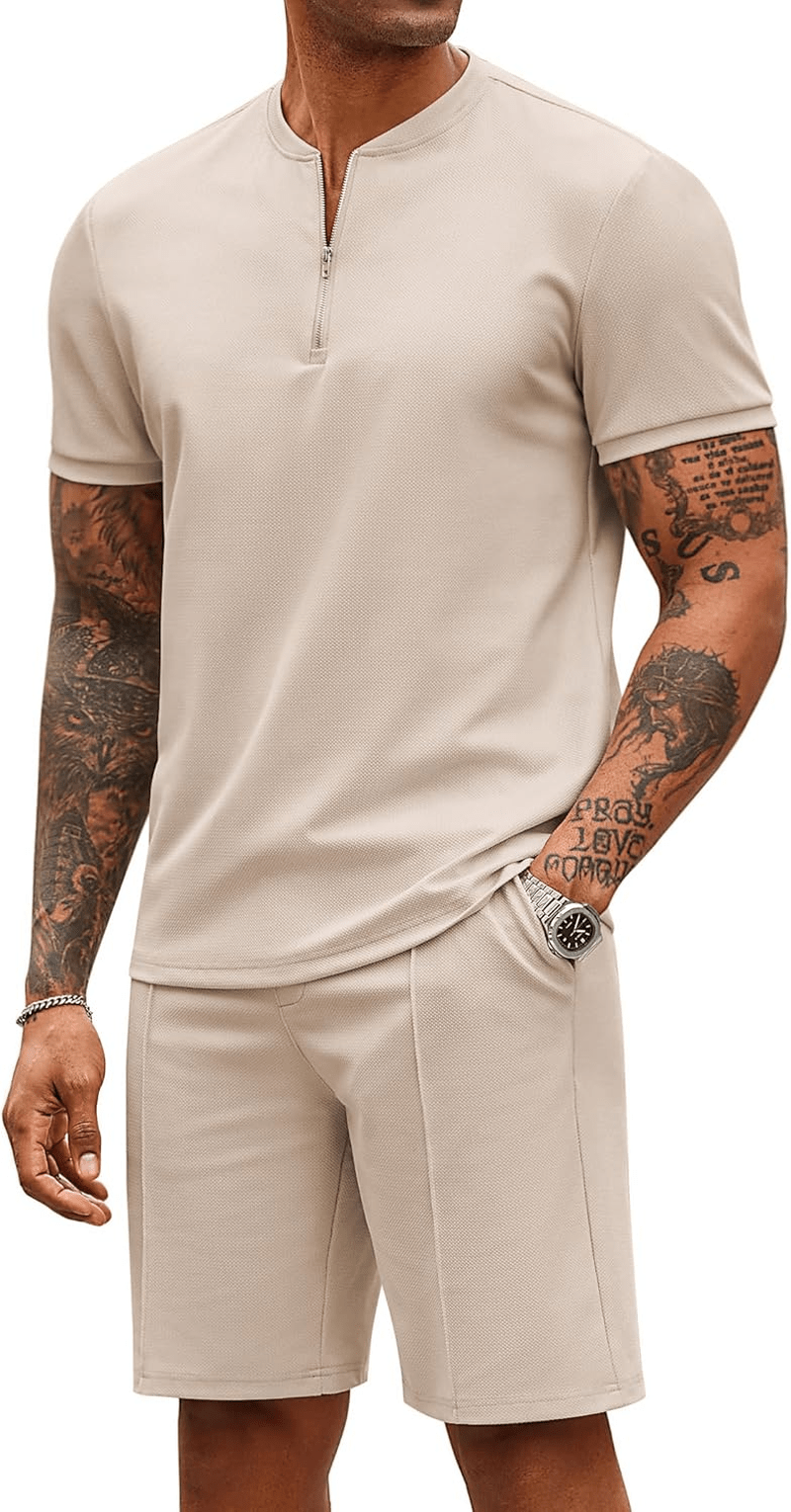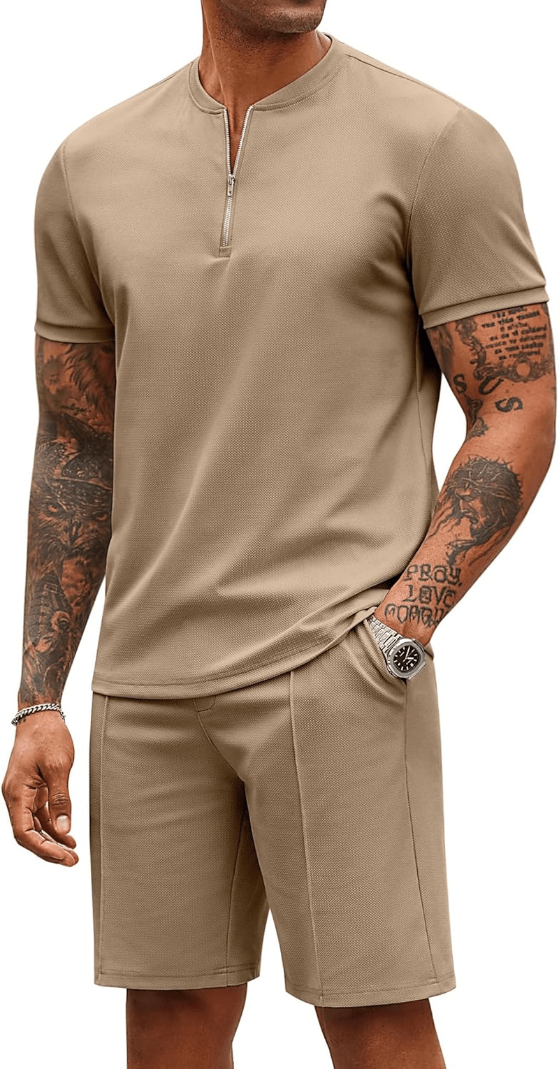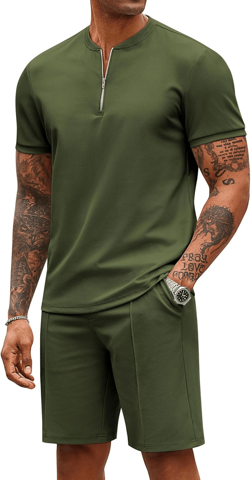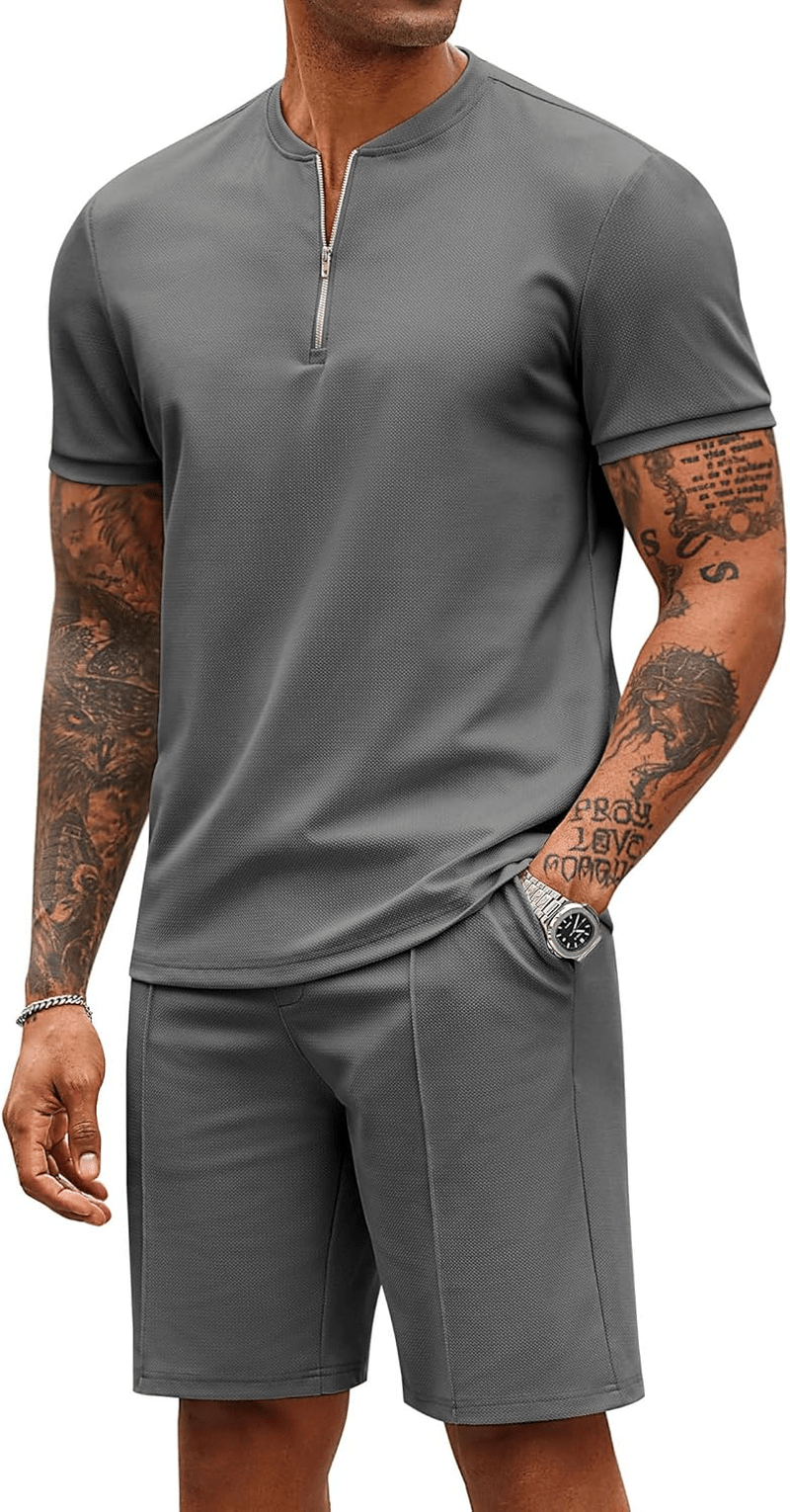 COOFANDY Mens 2 Piece Tracksuit Set Jogging Workout Quarter Zip Shirt Short Set