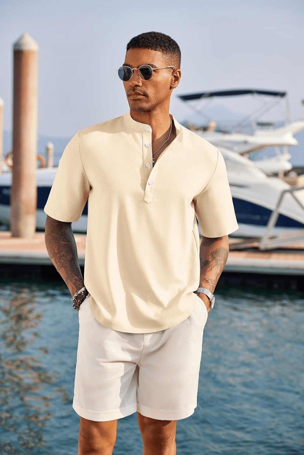 Whether you're walking the shoreline or enjoying dinner outdoors, this Henley shirt delivers timeless summer vibes with breathable ease.