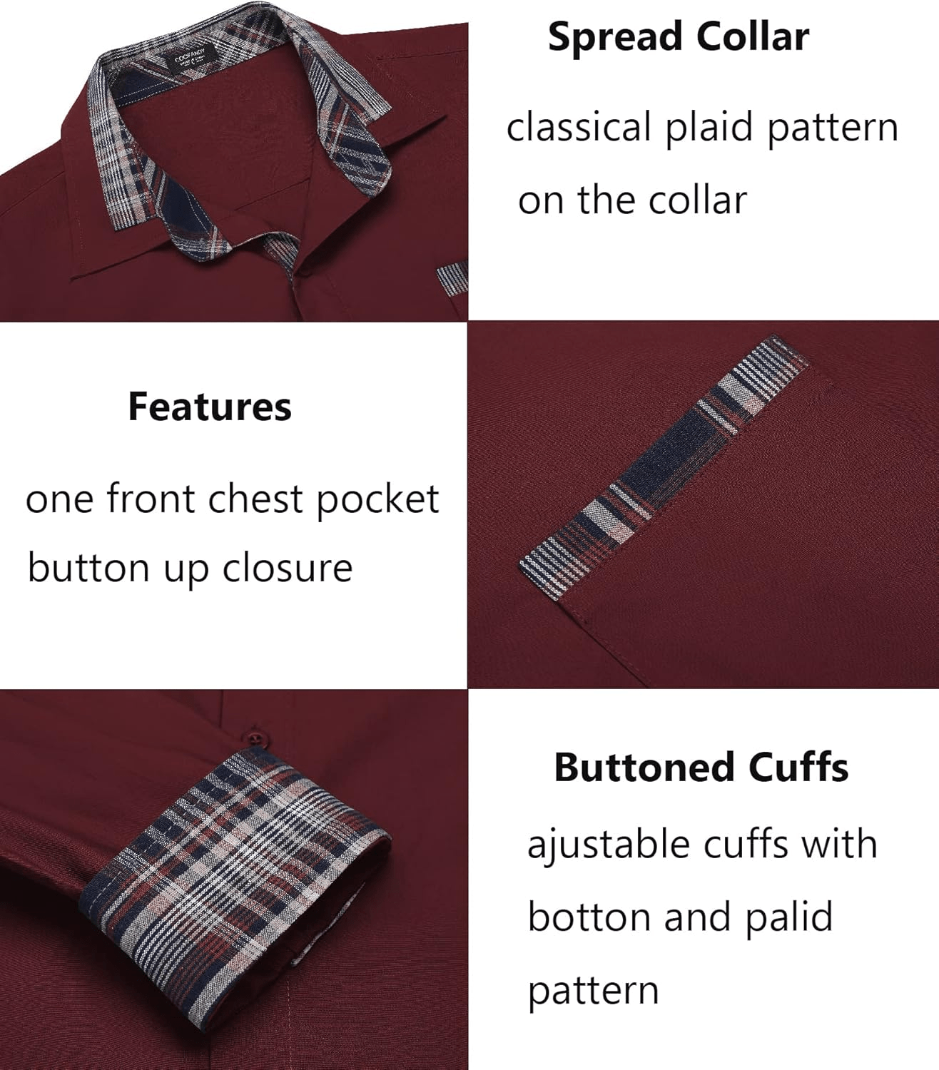 COOFANDY Men’s Long Sleeve Plaid Collar Dress Shirt – Casual Elegance for Work or Weekend | Now on Brundo.net