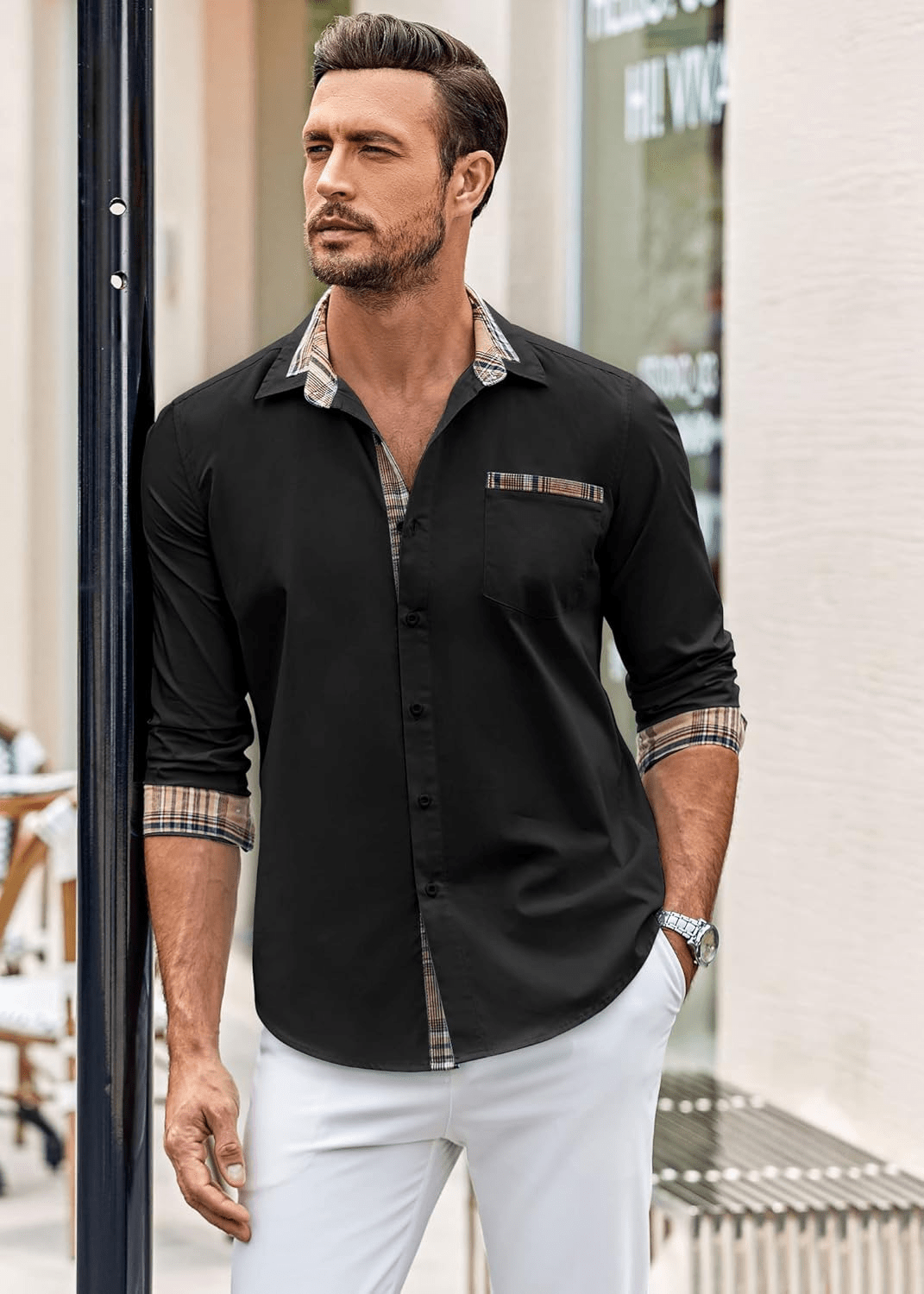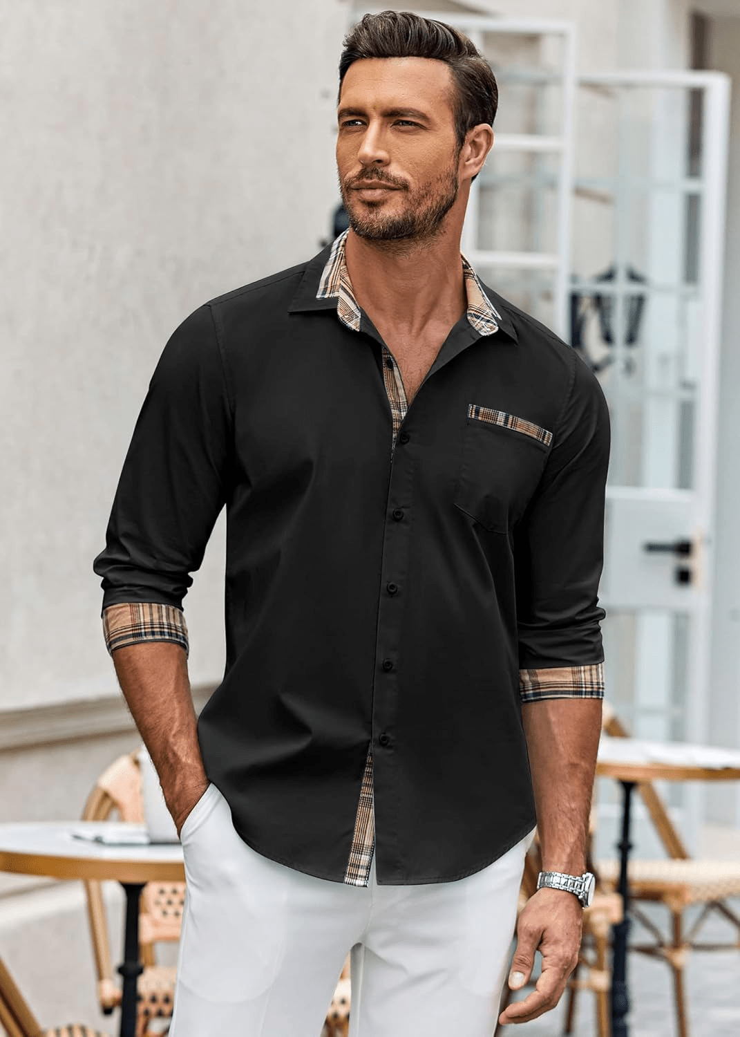 • Smart-Casual Versatility: Dress it up with slacks or dress it down with jeans — the plaid trim adds sophistication while keeping your look effortless.