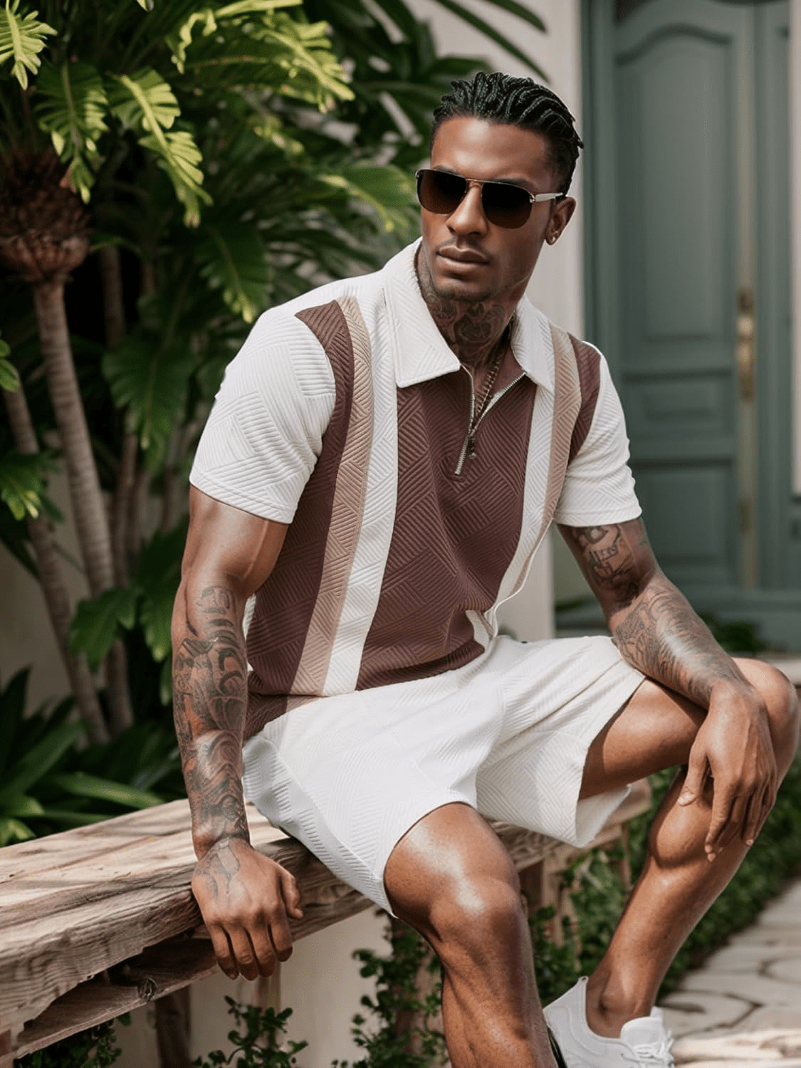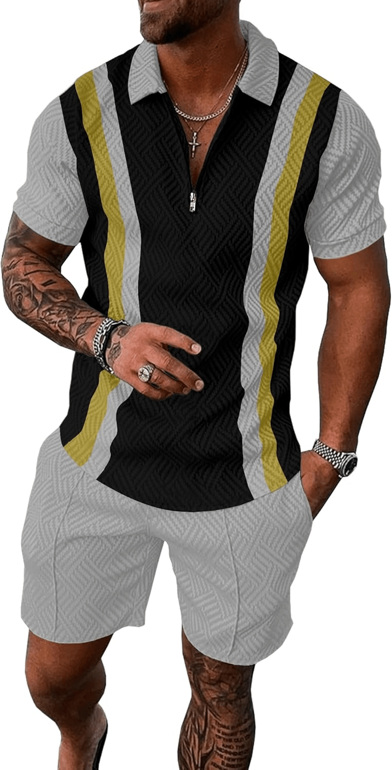 UOUA Mens Summer Track Suits 2 Piece Shorts Sets