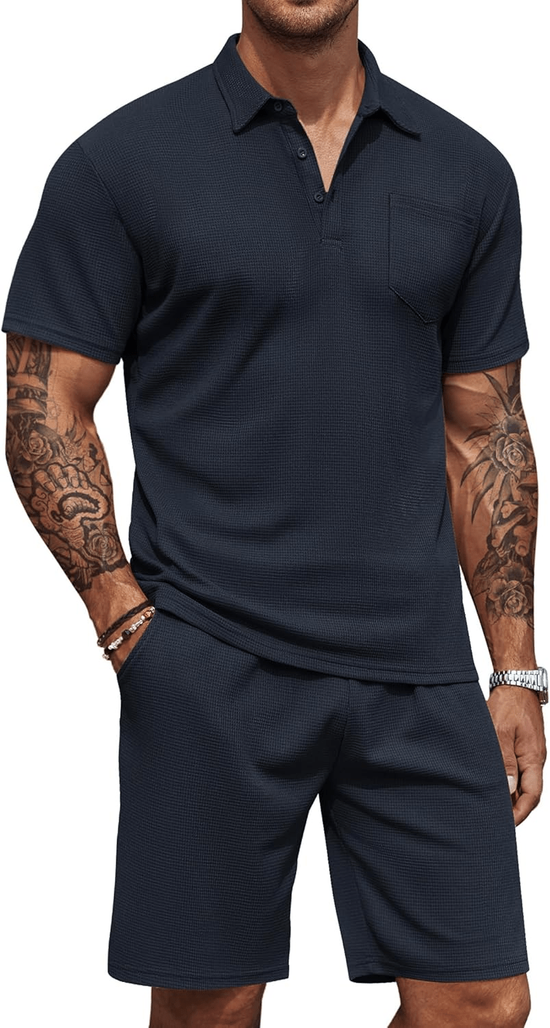 Be the first to review “Men’S Waffle Knit Polo Shirt and Shorts Set 2 Pieces Outfits Summer Suit Casual Tracksuit with Pockets”