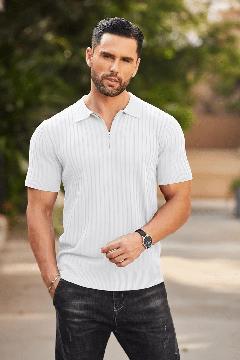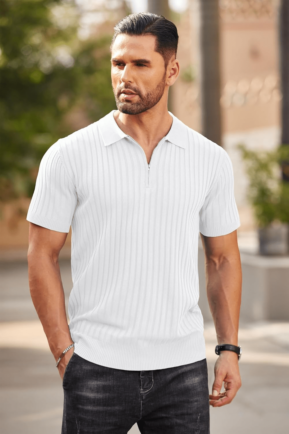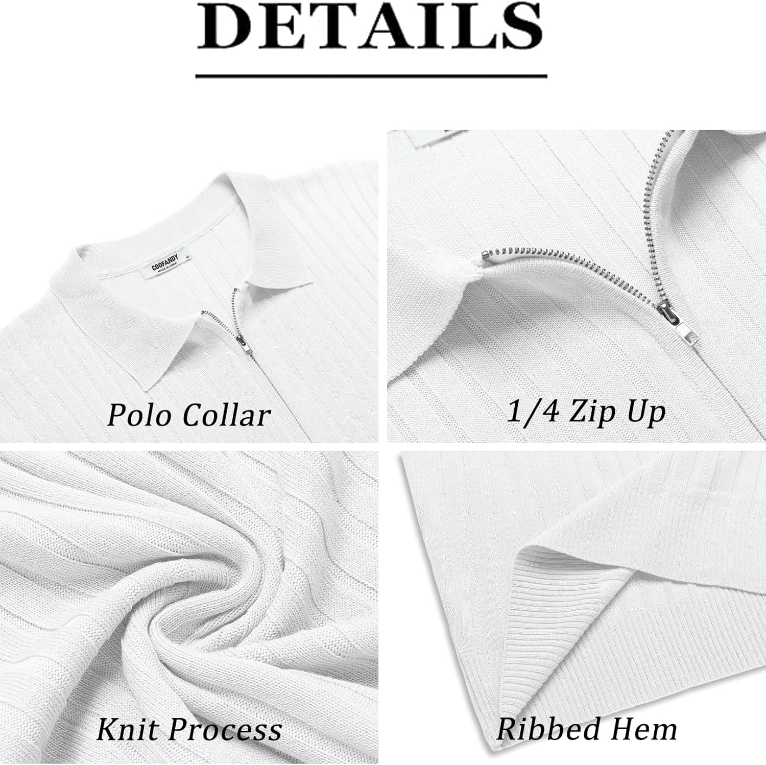 COOFANDY Men's Zipper Polo Shirt – Casual Stretch Ribbed Knit T-Shirt