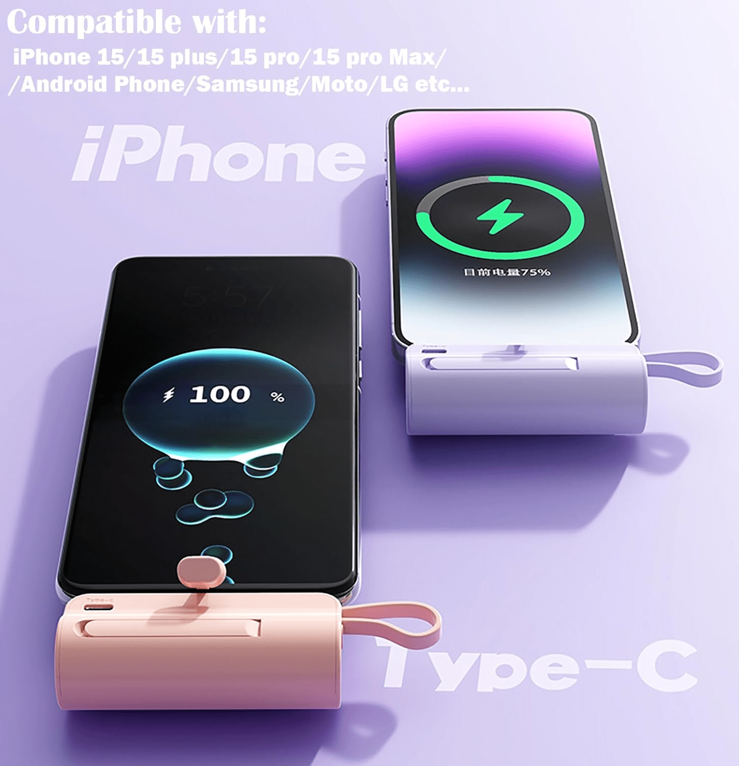Mini Power Bank, Capsule Power Phone Charger 5500mAh, Portable Charger with Dual USB-C Ports for iPhone 17/16/15/15 Plus/15 Pro/15 Pro Max/Android Phone/Samsung/Moto/LG and more.