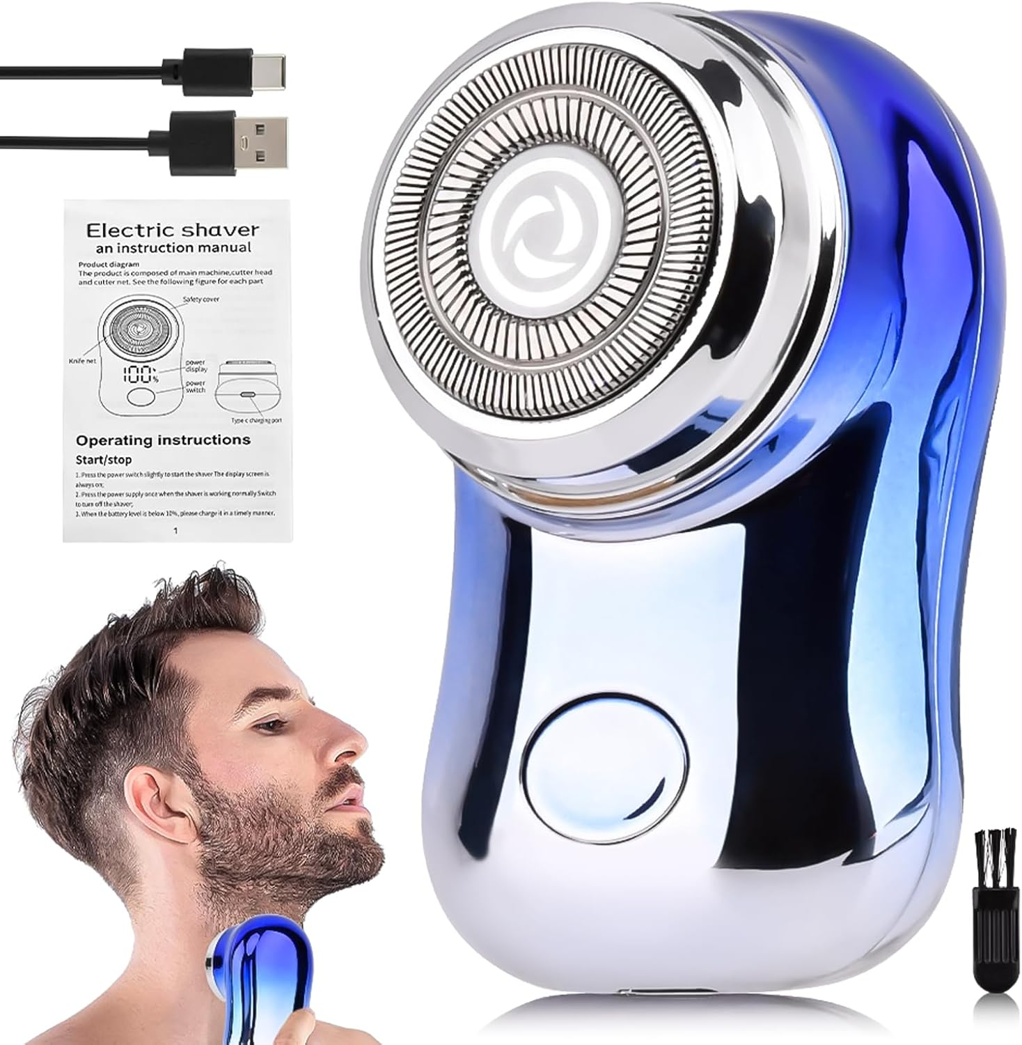 Mini Travel Electric Shaver, Portable Pocket Size Rechargeable Shaving Razor Lightweight Razor with Battery Power Display Wet & Dry Rotary for Teen Office Business(Gradient Blue)