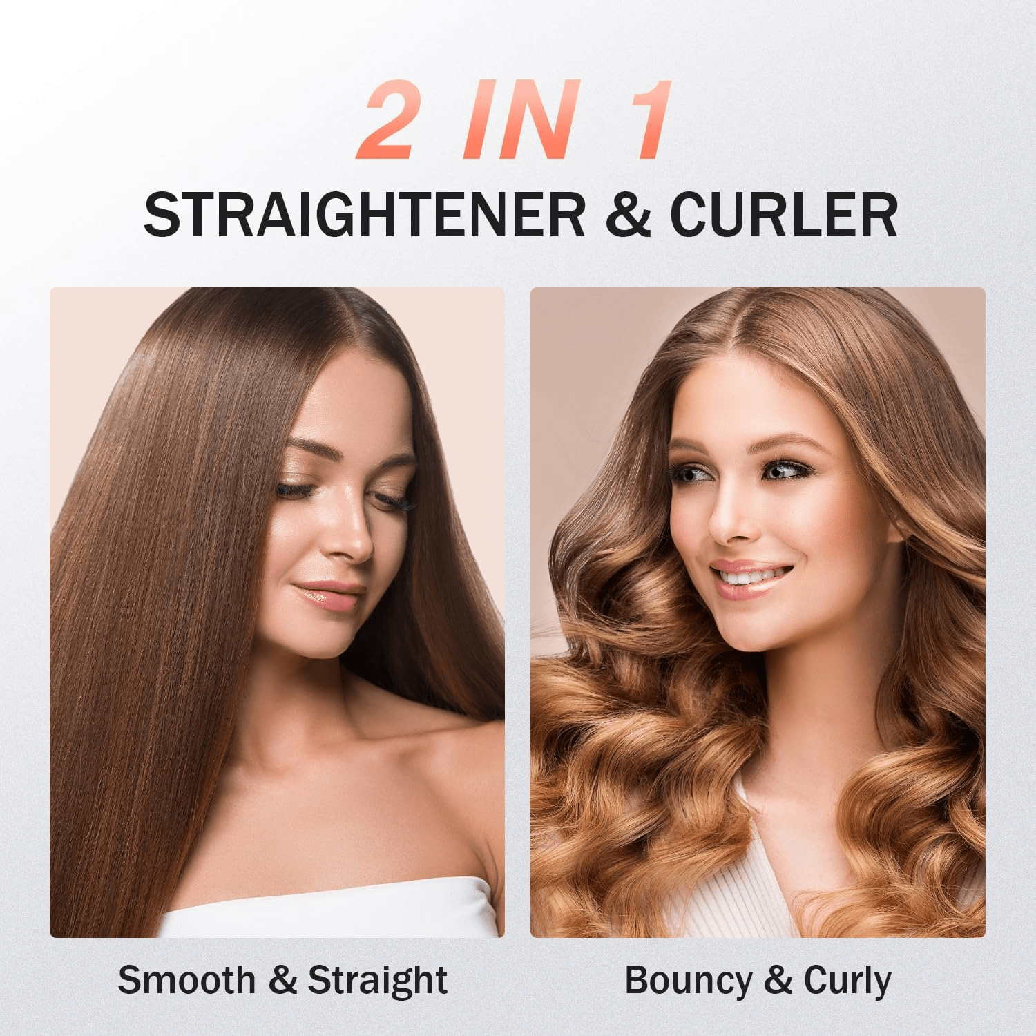 - 【2 in 1 Hair Straightener & Curler】 The 1 inch Ceramic flat iron allows you straight and curls with minimal effort. The hair straightener flat iron can easily create smooth, glossy straight hair and wavy, linear curls. The hair straightener iron can meet all your salon hairstyles anytime anywhere in less time.