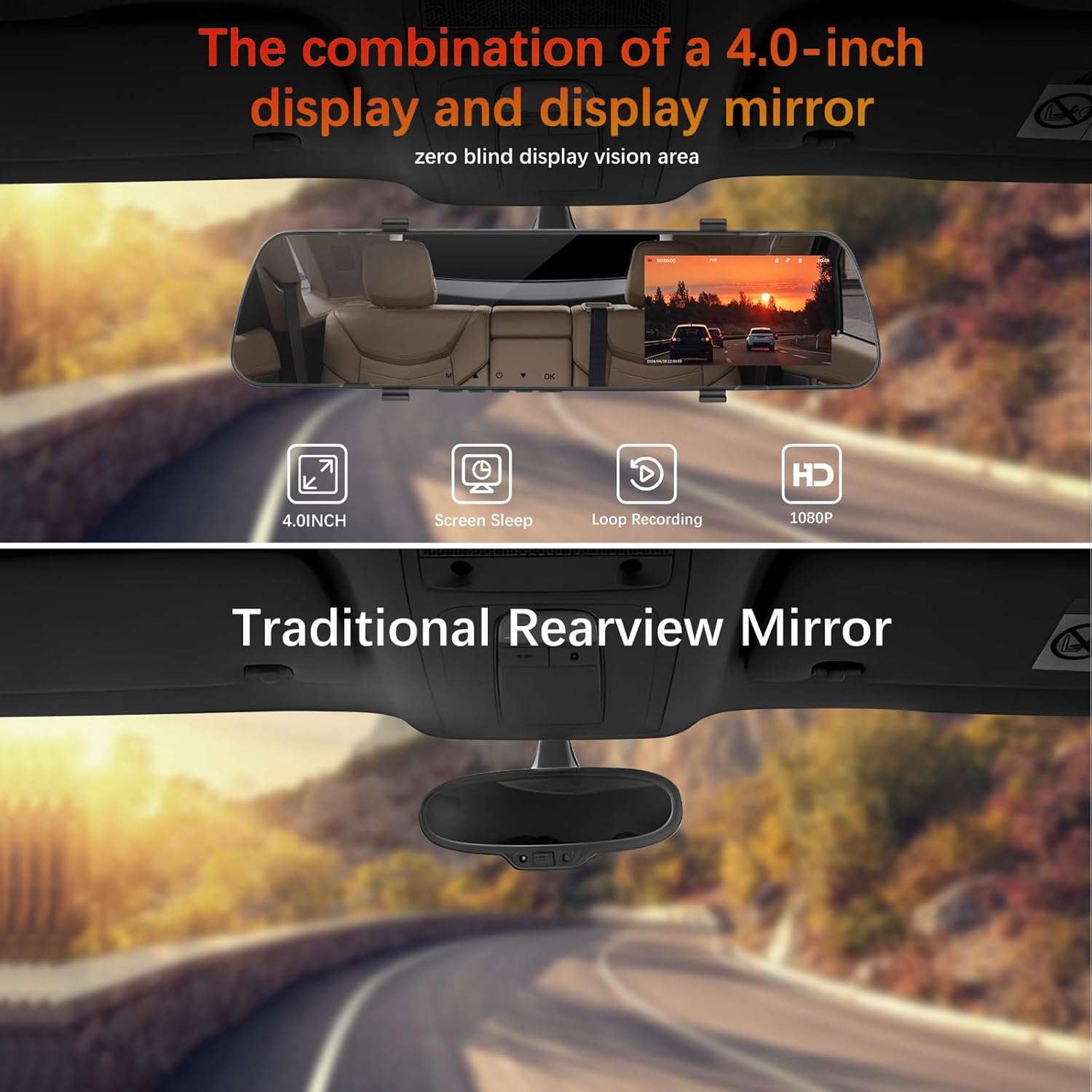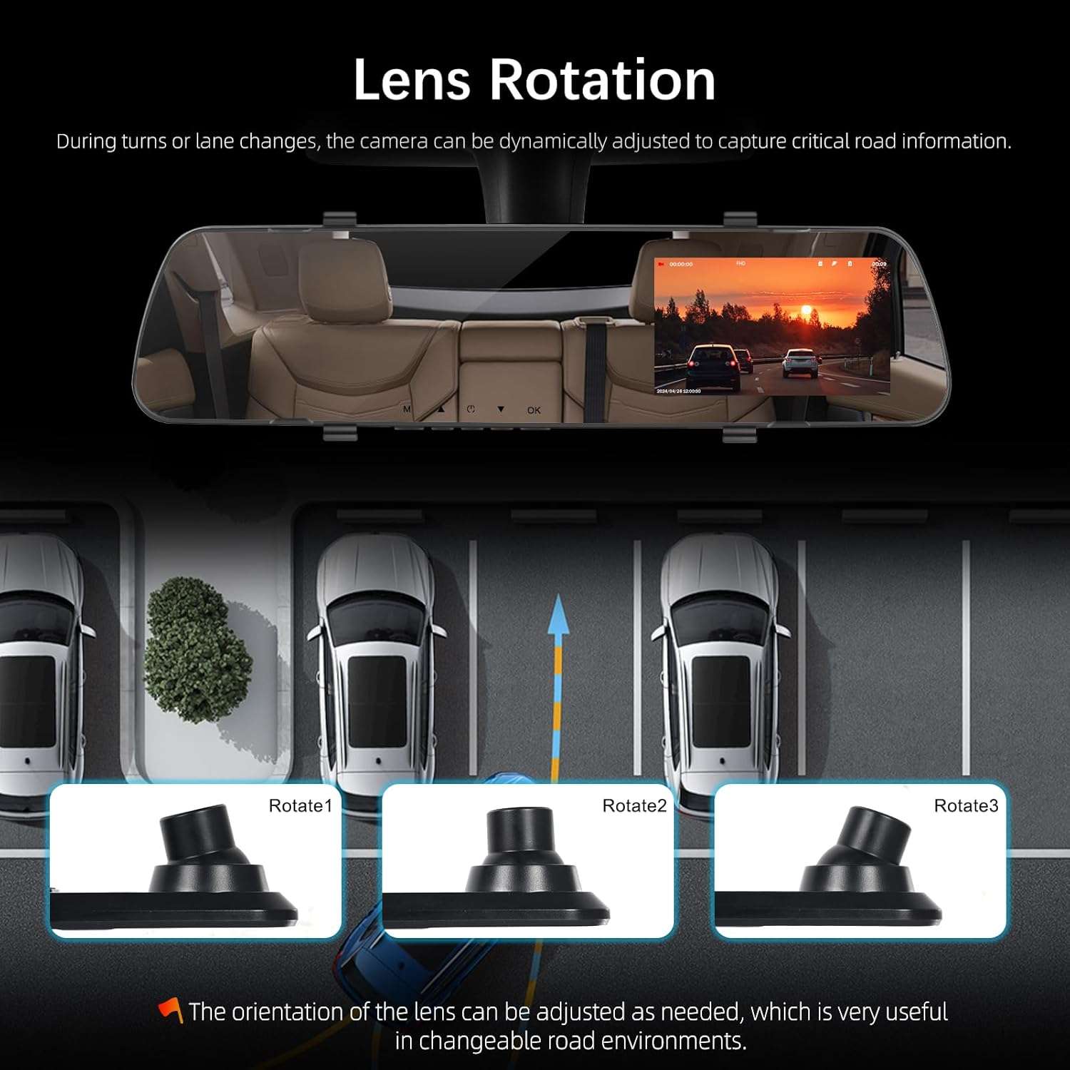 - 【Dual Function Dash Mirror & DVR】 When the camera is turned off, it functions as a standard rearview mirror, allowing you to check your appearance effortlessly before driving. Once activated, it records your journey, offering a clear view of both the front and rear of your vehicle. This dual functionality ensures that you are always connected and aware of your driving environment while also maintaining practical everyday use.