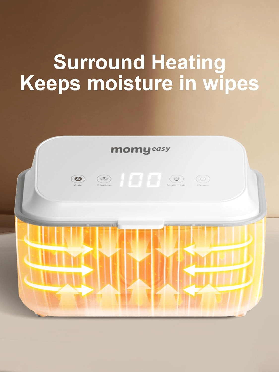 - Surround Heating: The MOMYEASY Baby Wipe Warmer utilizes an innovative surrounding heating design to effectively warm each wet wipe, ensuring that they remain consistently warm, fresh, and moist. The integrated soft night light facilitates easier access during nighttime changes, making the experience comfortable for both parent and baby.