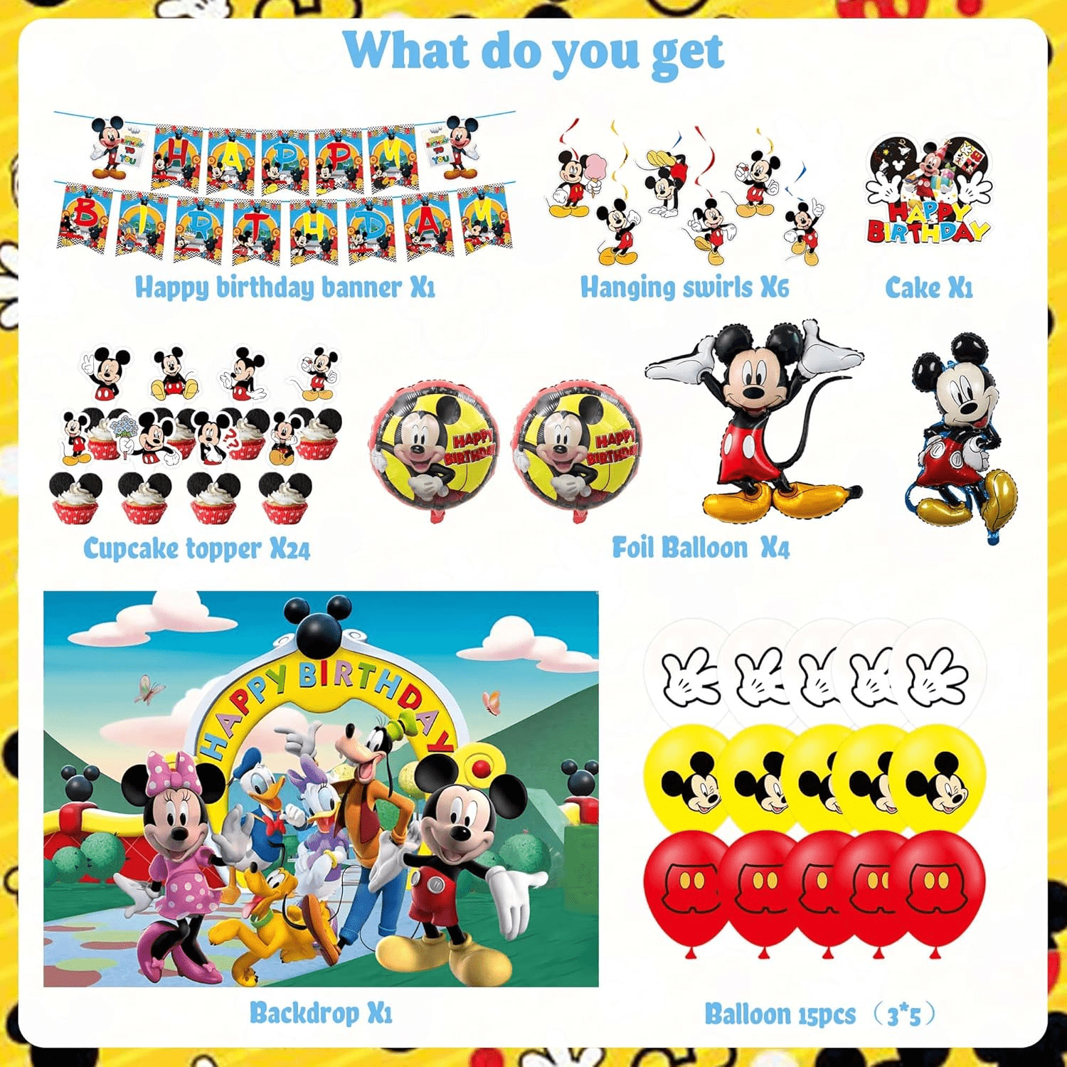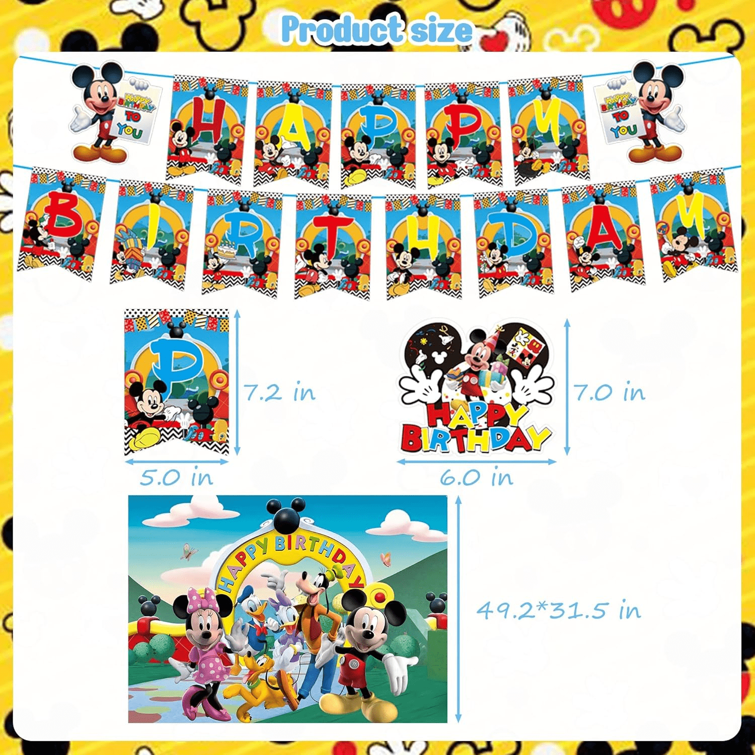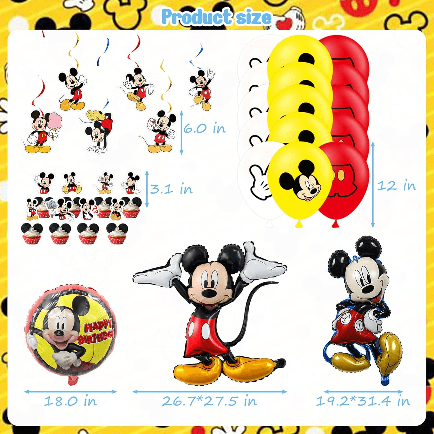 - Mouse Theme Birthday Decorations Include Banner, Hanging Swirls, Balloons, Backdrop, Tablecloth, Mouse party supplies