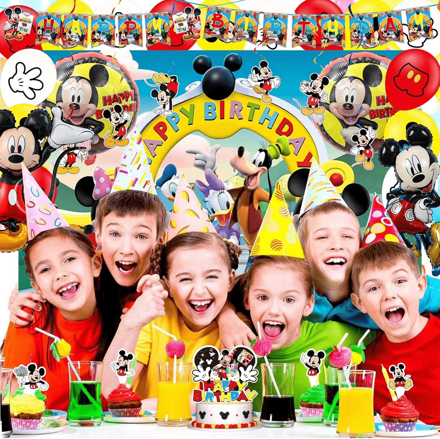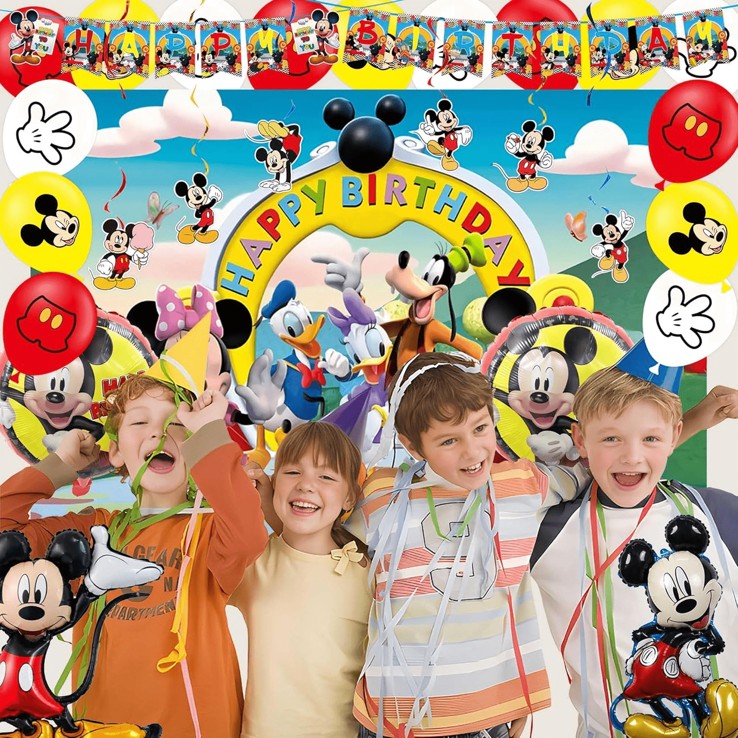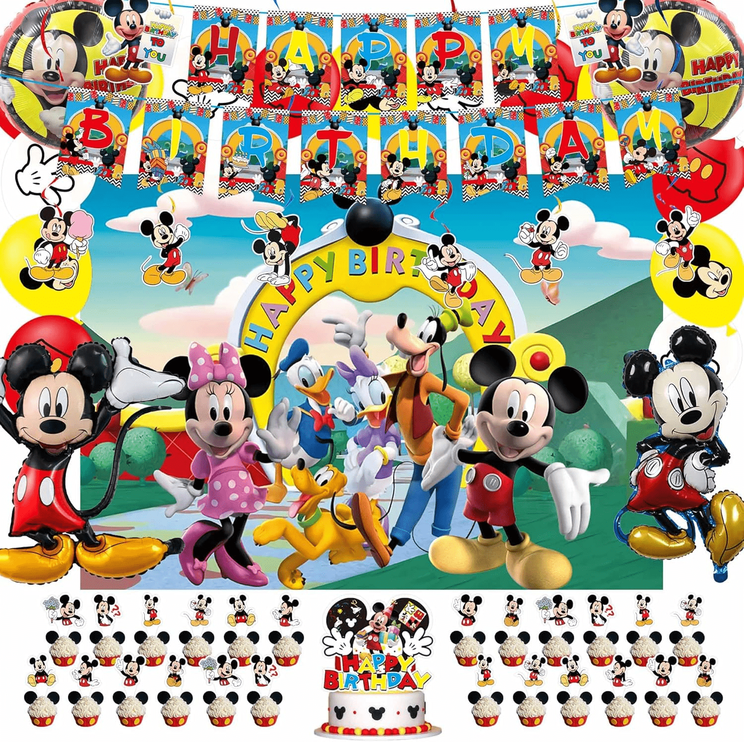 - Mouse Theme Birthday Decorations Include Banner, Hanging Swirls, Balloons, Backdrop, Tablecloth, Mouse party supplies